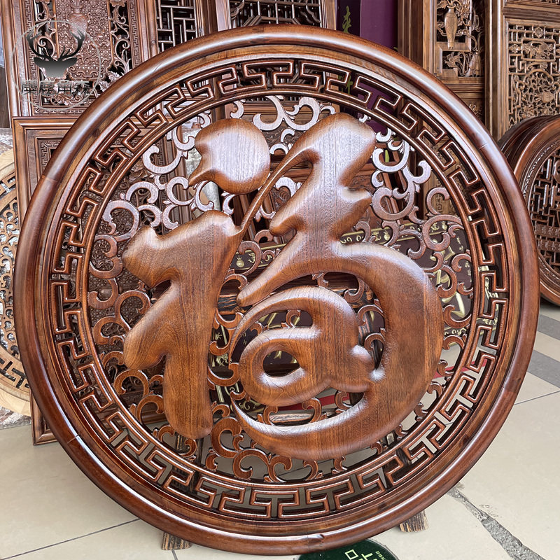 东阳木雕香樟木实木挂件客厅玄关装饰画餐厅仿古福字中式定制
