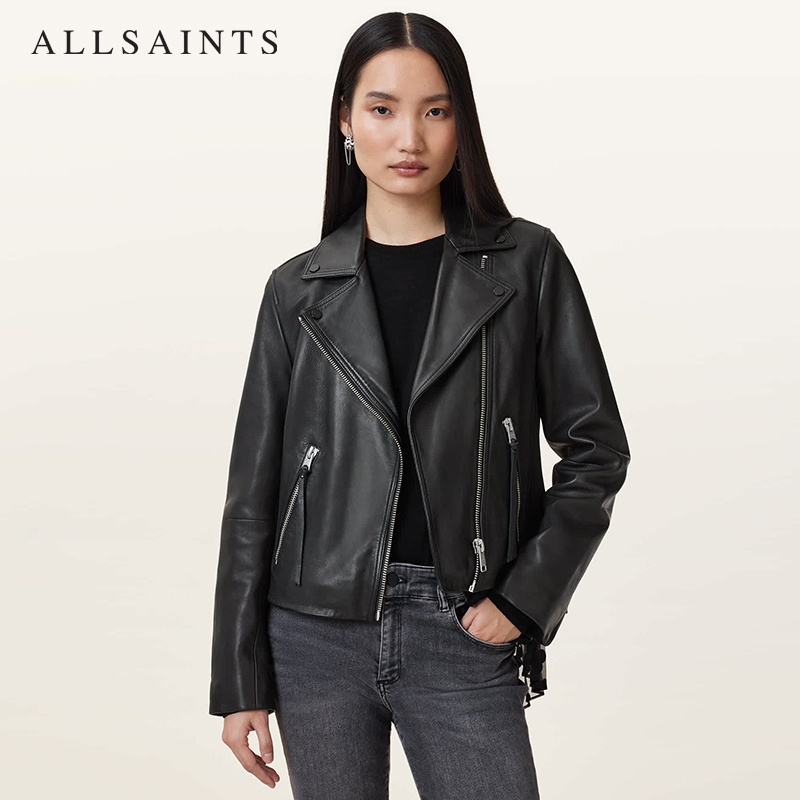 明星同款ALLSAINTS女士率性骑士皮衣Dalby夹克外套2025秋季W086LB