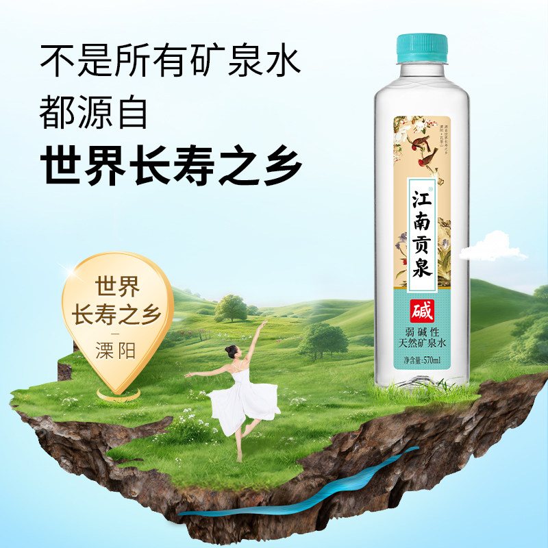洞庭山江南贡泉天然弱碱性矿泉水350/570ml*24瓶整箱 饮用瓶装水