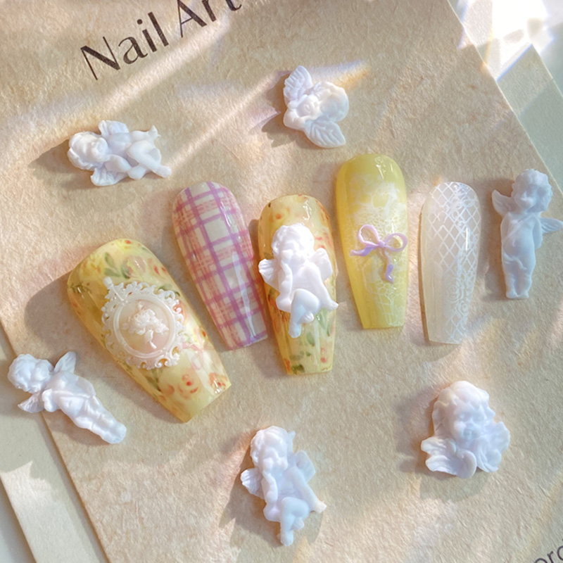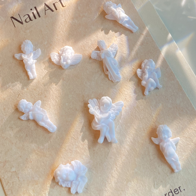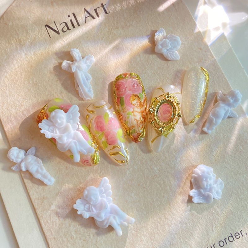 美甲迷你翅膀天使之翼巴洛克浮雕树脂立体可爱少女白色指甲装饰