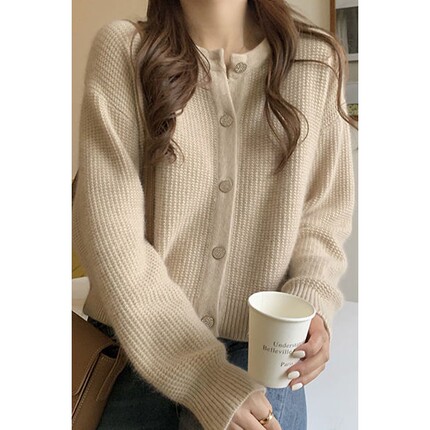 品牌网红温柔风毛衣外套女短款圆领上衣外搭复古港风小个子针织开