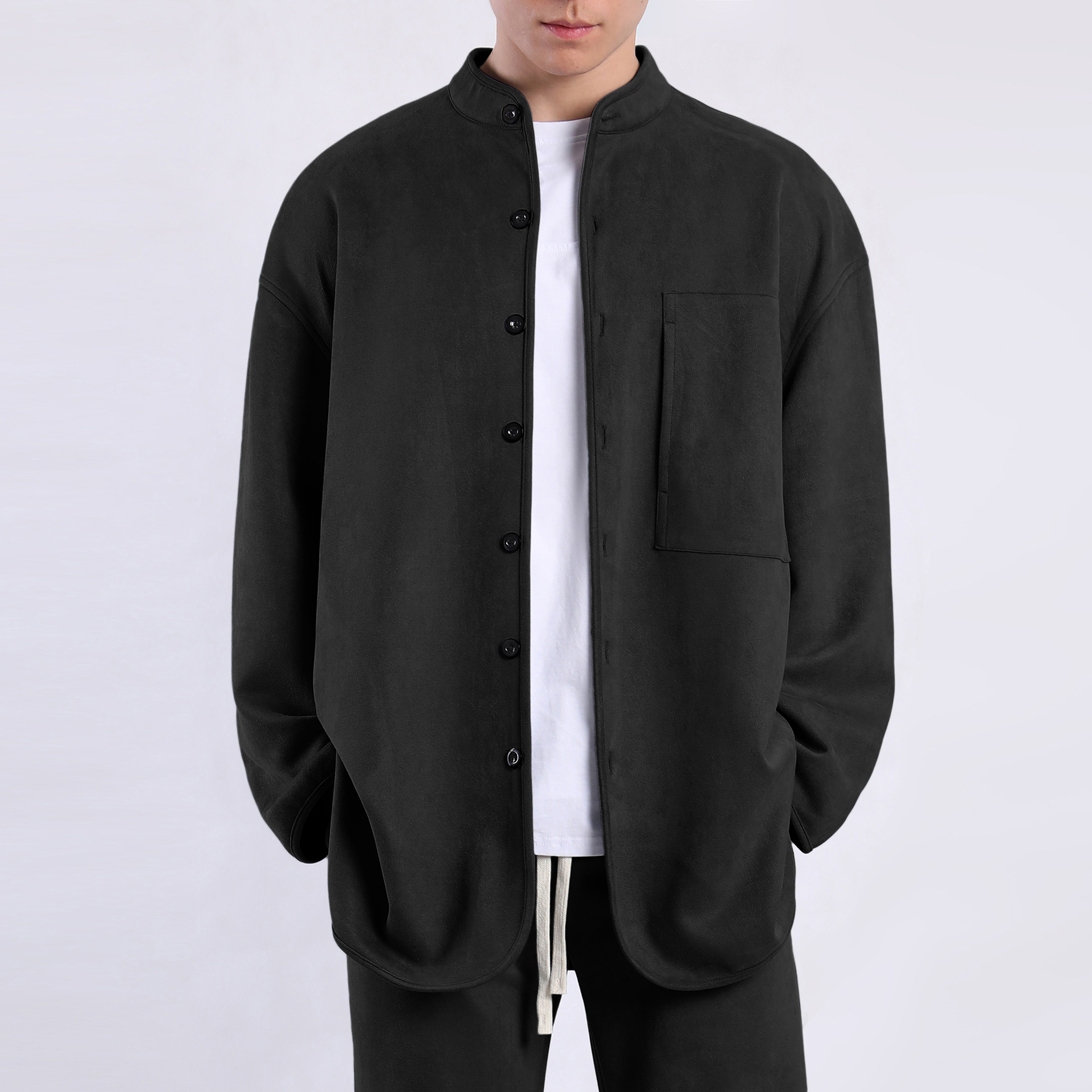 秋冬季新款针织开衫外套立领男装上衣衬衫休闲户外厚款保暖夹克
