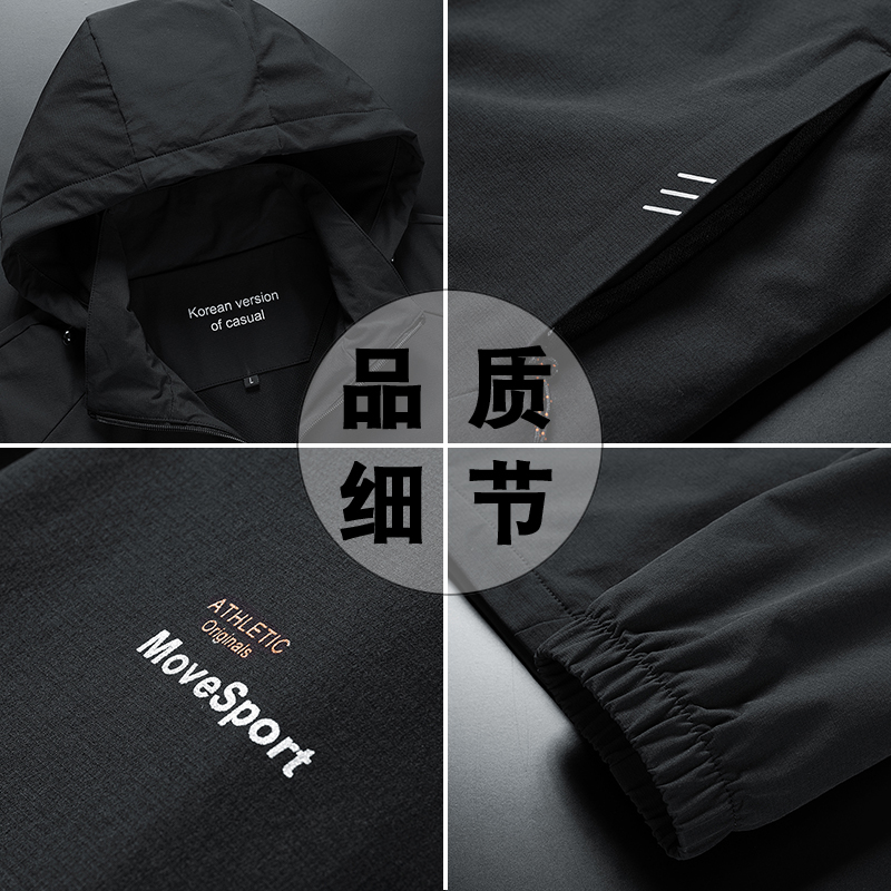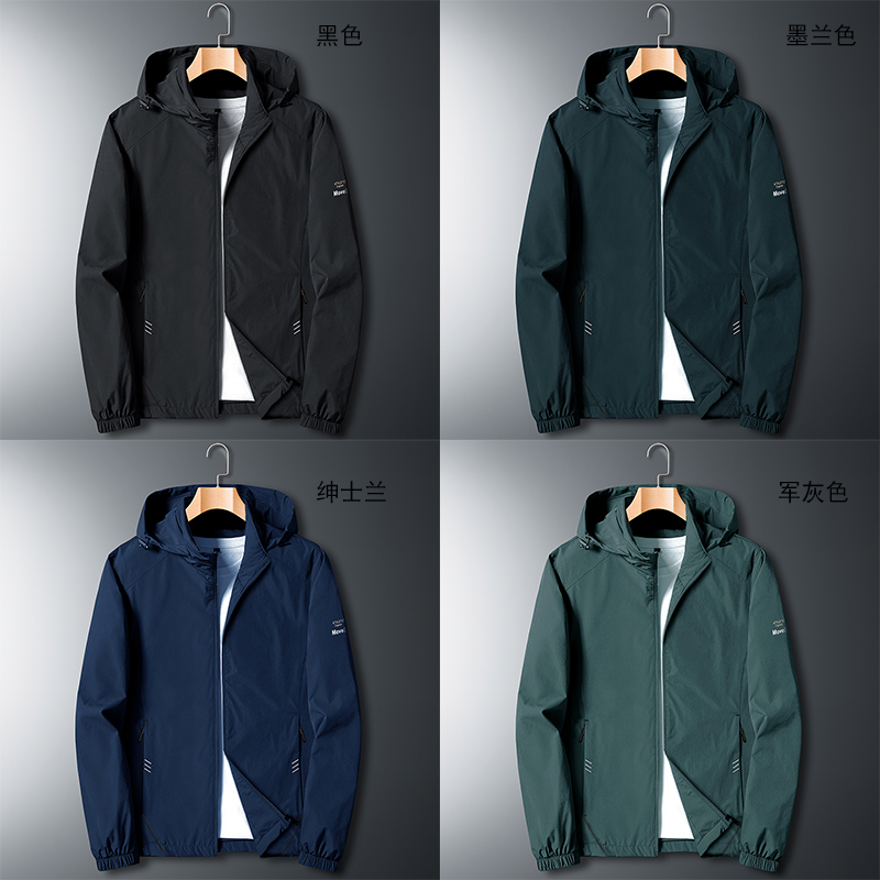 秋季运动外套男士秋装上衣服薄款宽松连帽冲锋衣防风褂子休闲夹克