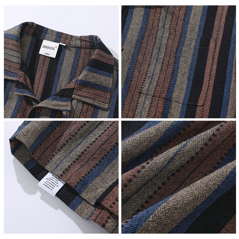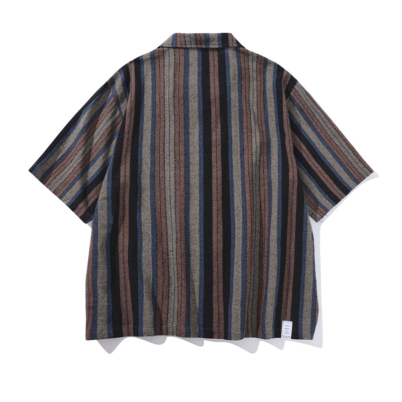 古巴领竖条纹夏季古着巴洛克衬衣短袖日系慵懒风衬衫男夏装半袖衫