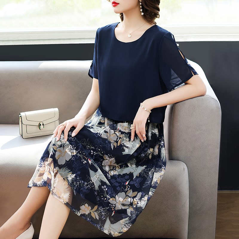 现货速发中年装气质真丝连衣裙2025新款妈妈夏装洋气大码母亲节裙