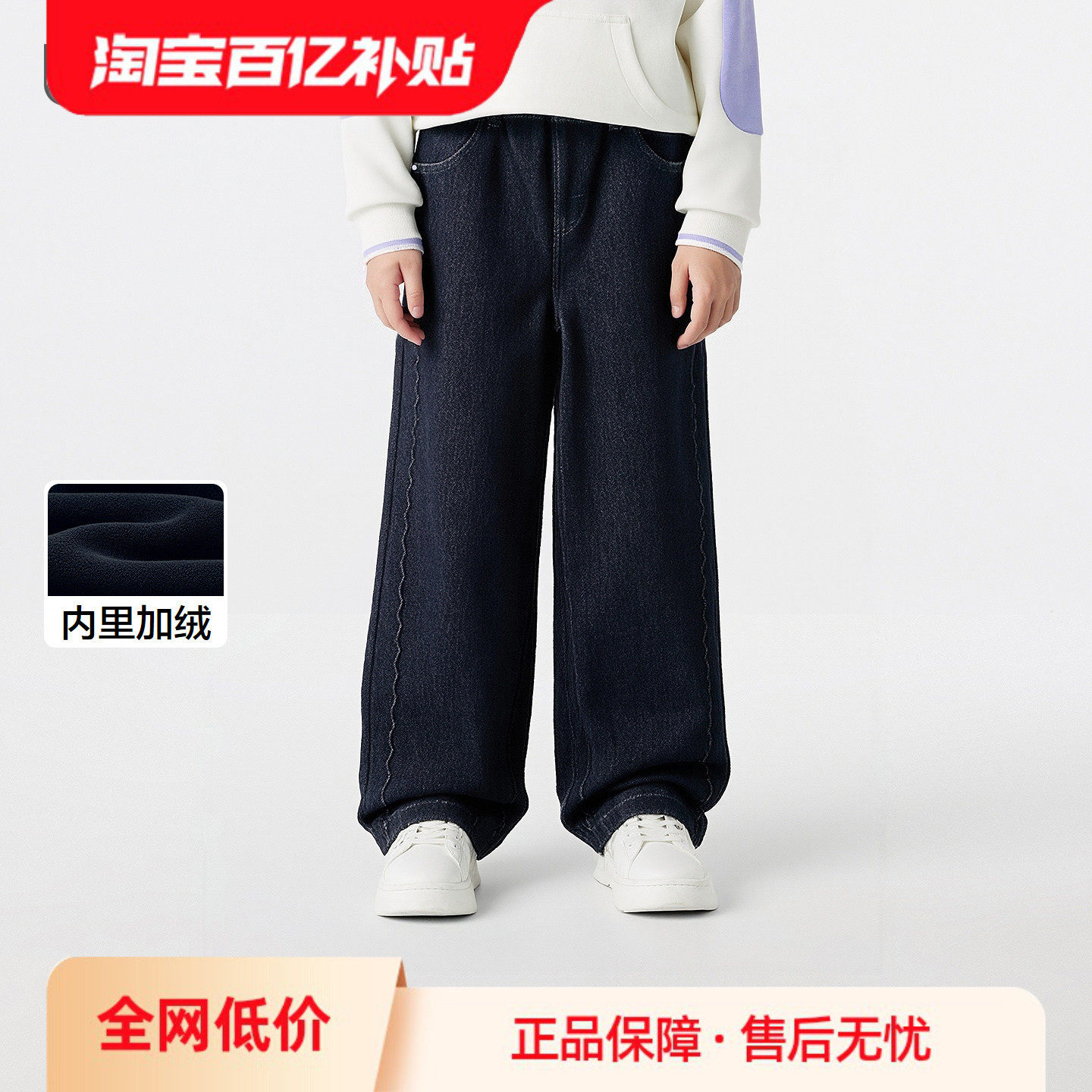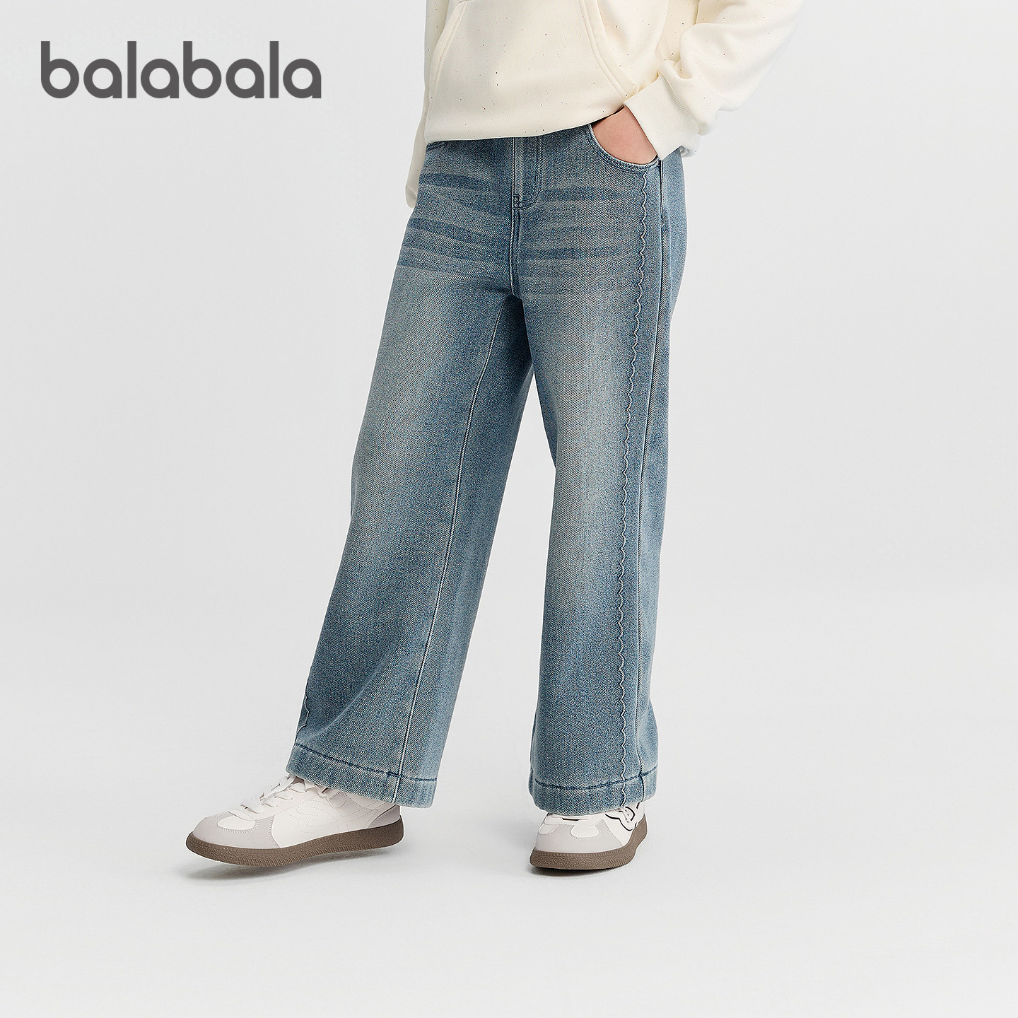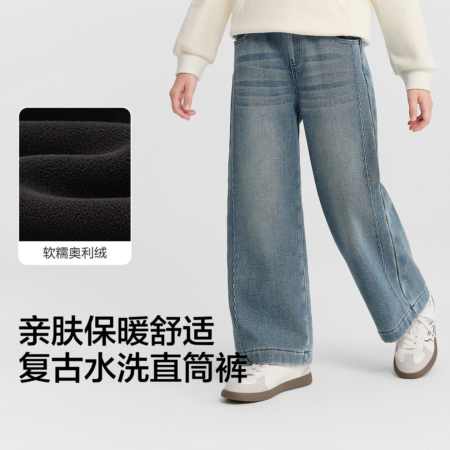 巴拉巴拉牛仔裤女童加绒直筒裤