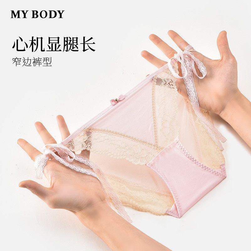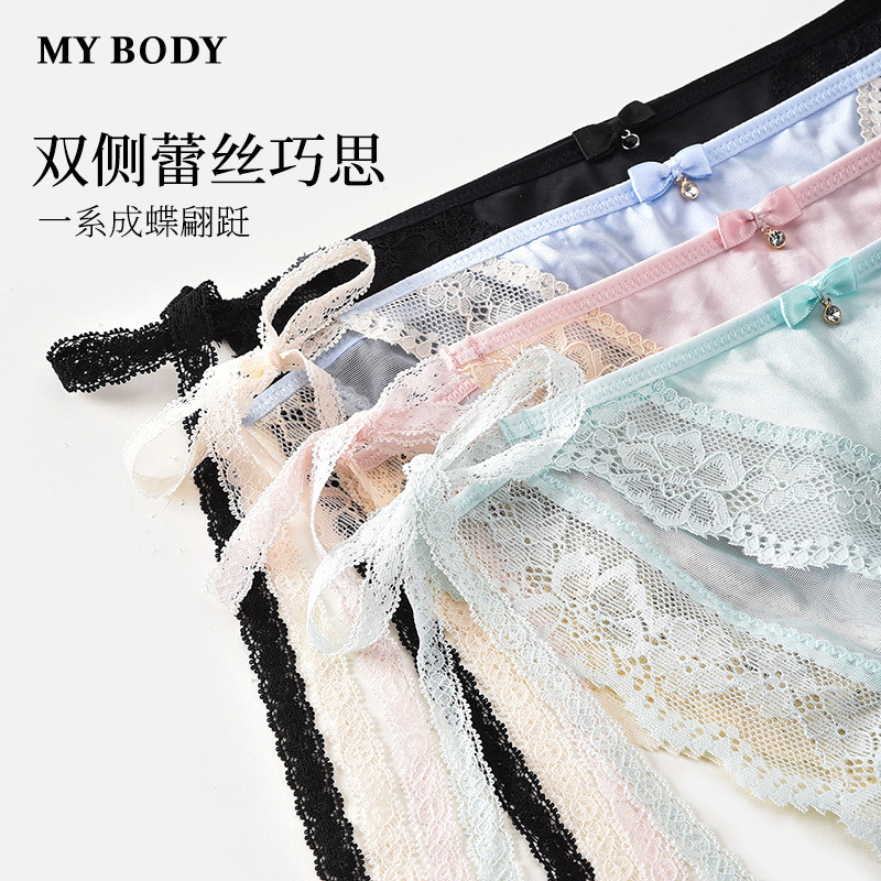 3件159|商场同款MYBODY内裤性感纯欲蝴蝶结系带蕾丝低腰三角裤