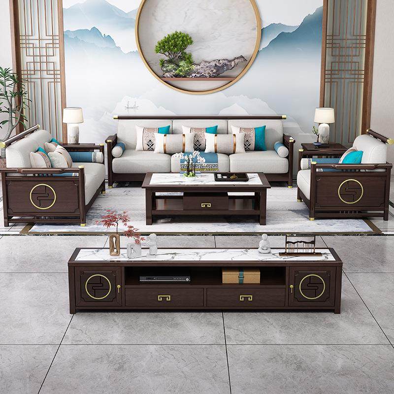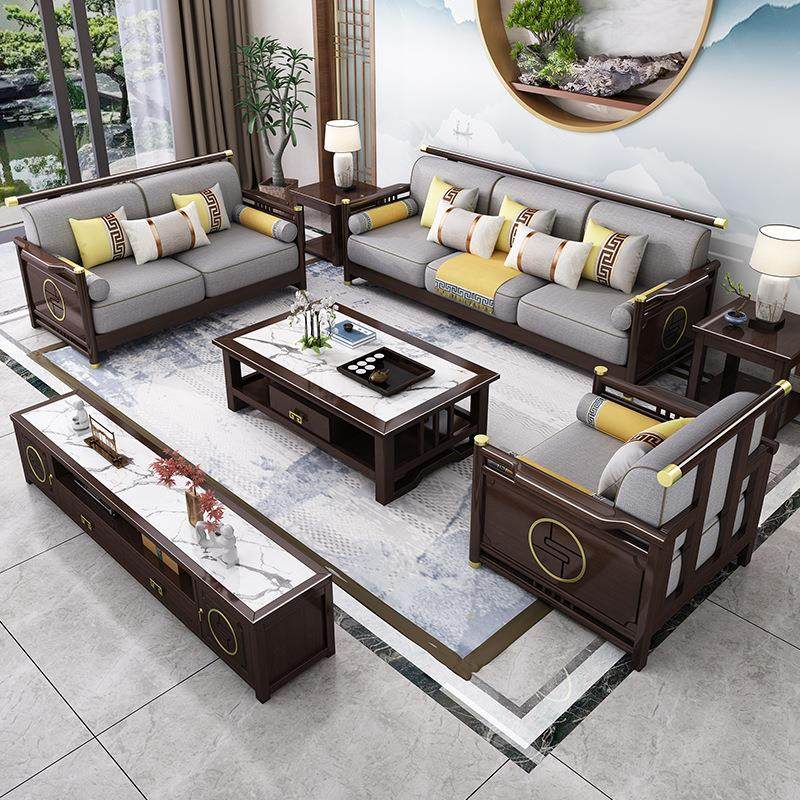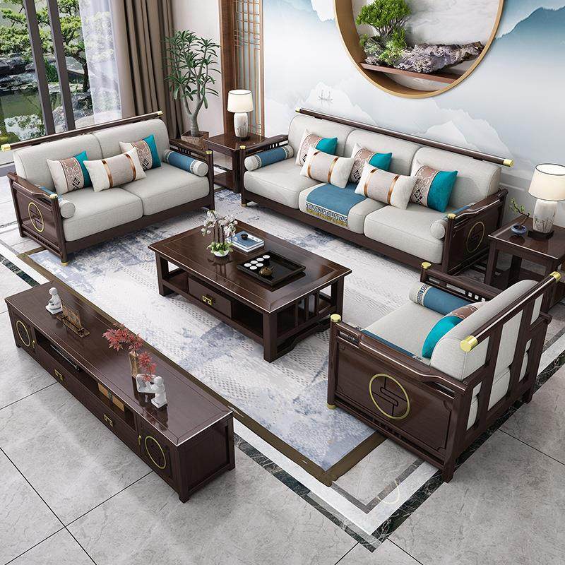 新中式实木沙发组合 简约小户型橡胶木客厅家具贵妃转角布艺沙发