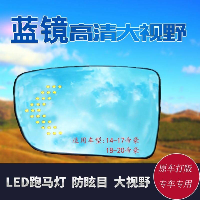 帝豪LED大视野蓝镜防眩目改电加热盲区监测广角镜高清晰后视镜