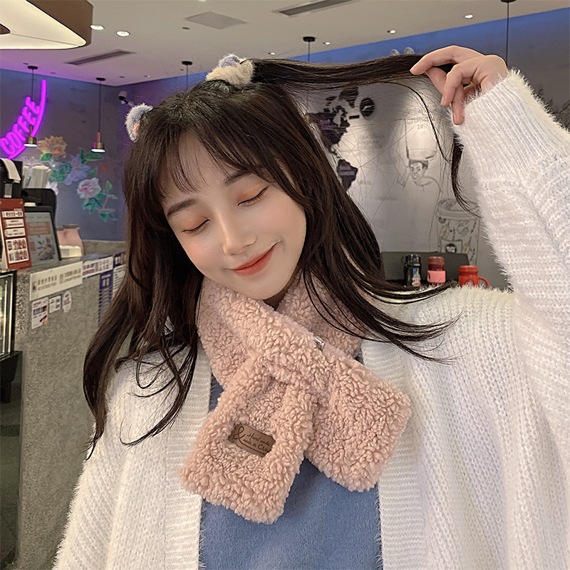 双面围脖女秋冬季加厚保暖交叉围巾少女心休闲韩版仿兔毛羊绒学生