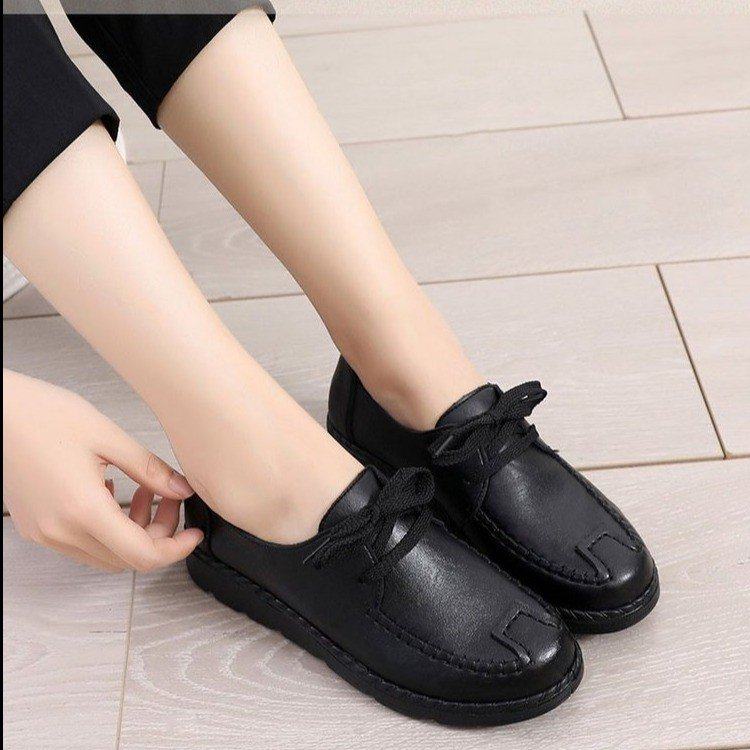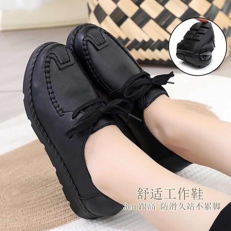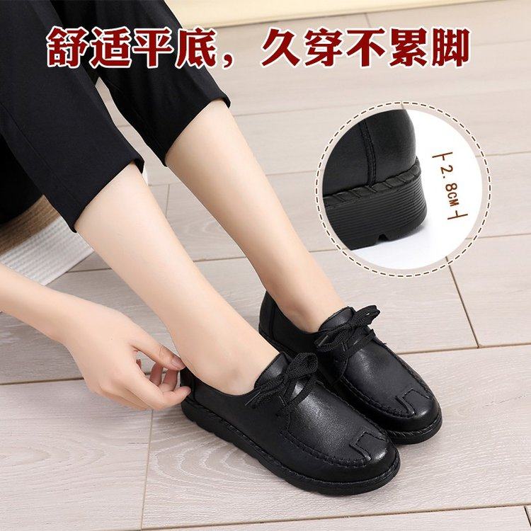 大东妞品牌断码清仓厨房肯德基工作鞋真皮女上班黑色鞋子防滑软底