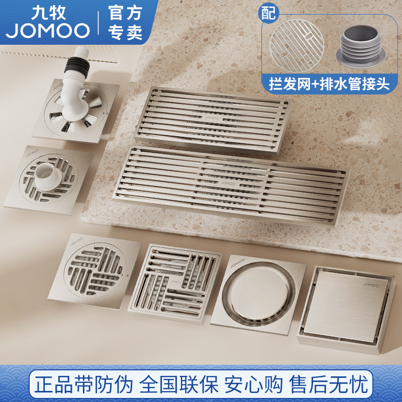 九牧卫浴奶油风防臭地漏卫生间通用洗衣机地漏精铜拉丝防虫防返水