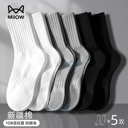 猫人袜子男款防臭中筒袜春秋款10A抗菌男士吸汗防脚气运动长筒袜