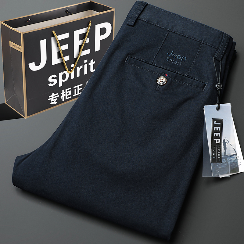 JEEP吉普纯棉男士休闲裤男秋冬厚款商务大码直筒宽松耐穿大牌长裤