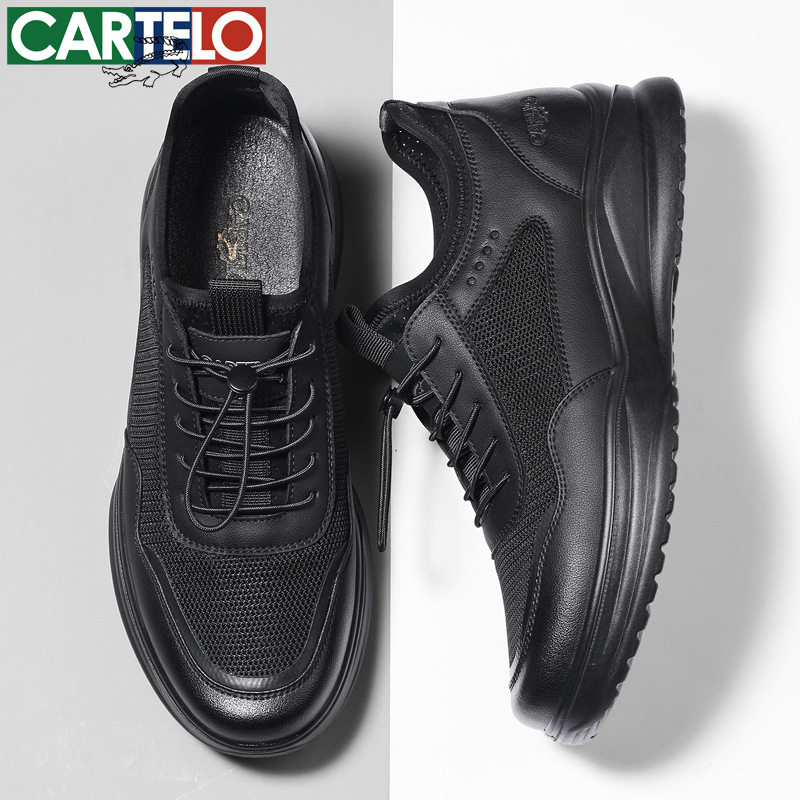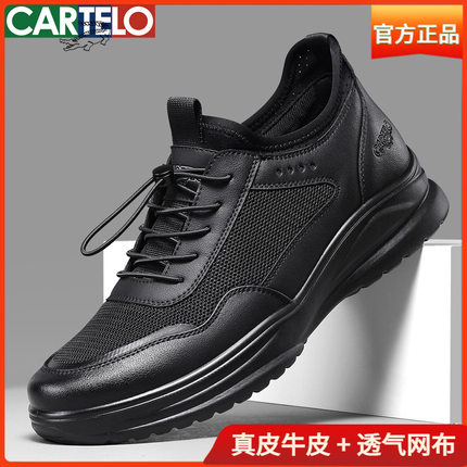 卡帝乐男鞋2026新款春季透气网面运动鞋男款真皮软底中年休闲皮鞋