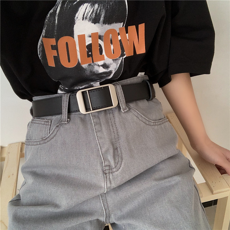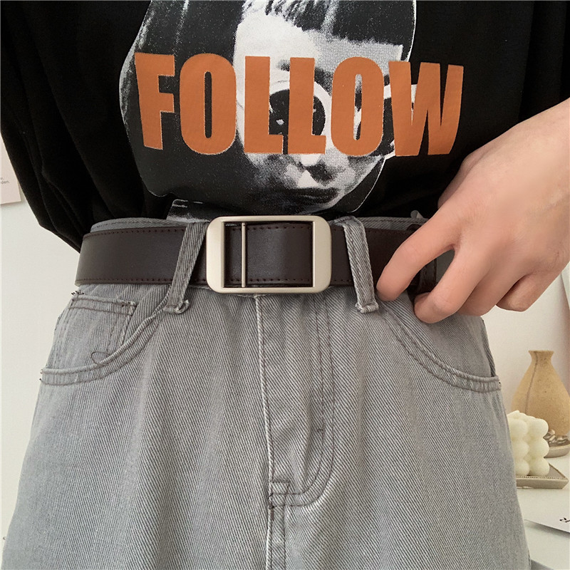 皮带牛仔裤学生韩版不用孔潮
