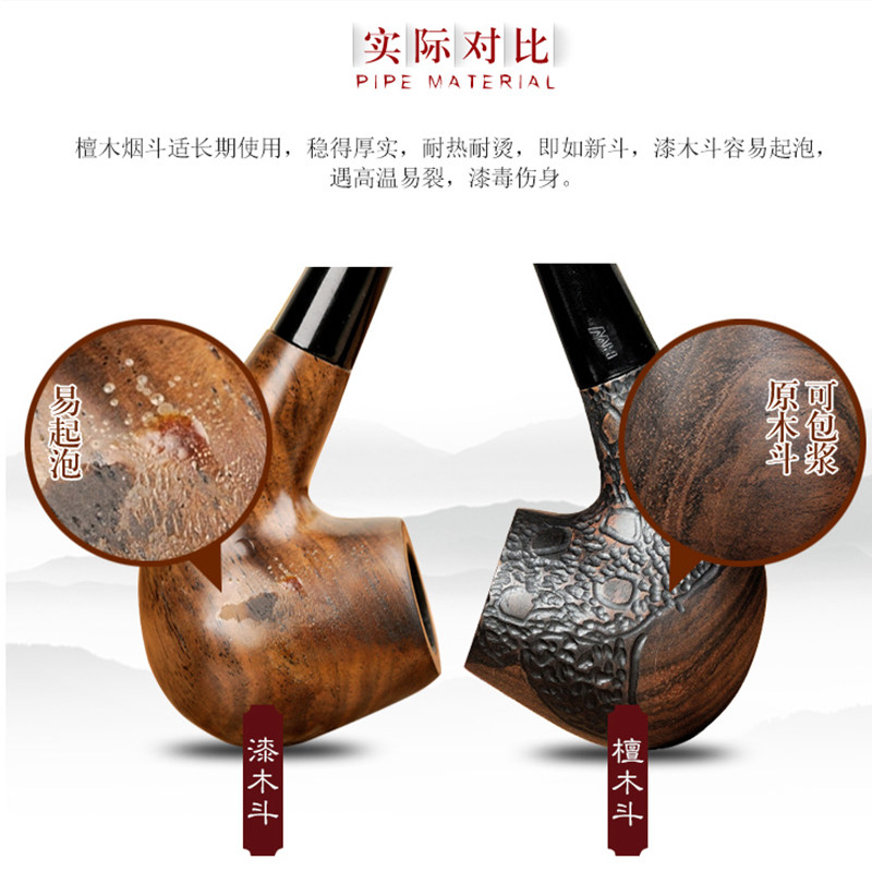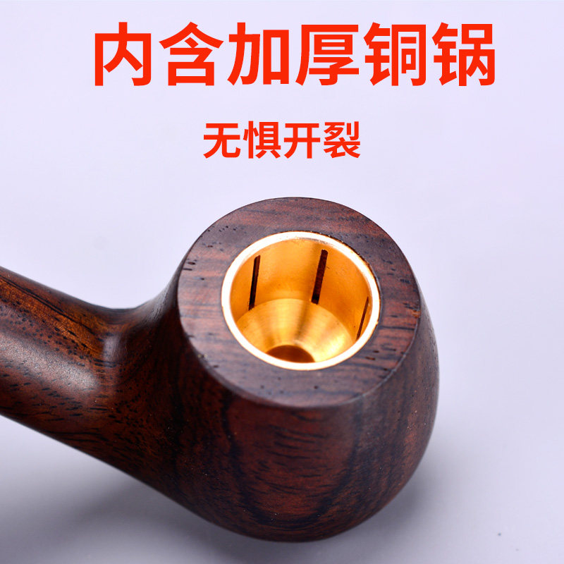 实木三用铜锅烟斗男士老式便携大号烟袋锅过滤烟斗旱烟丝烟草专用