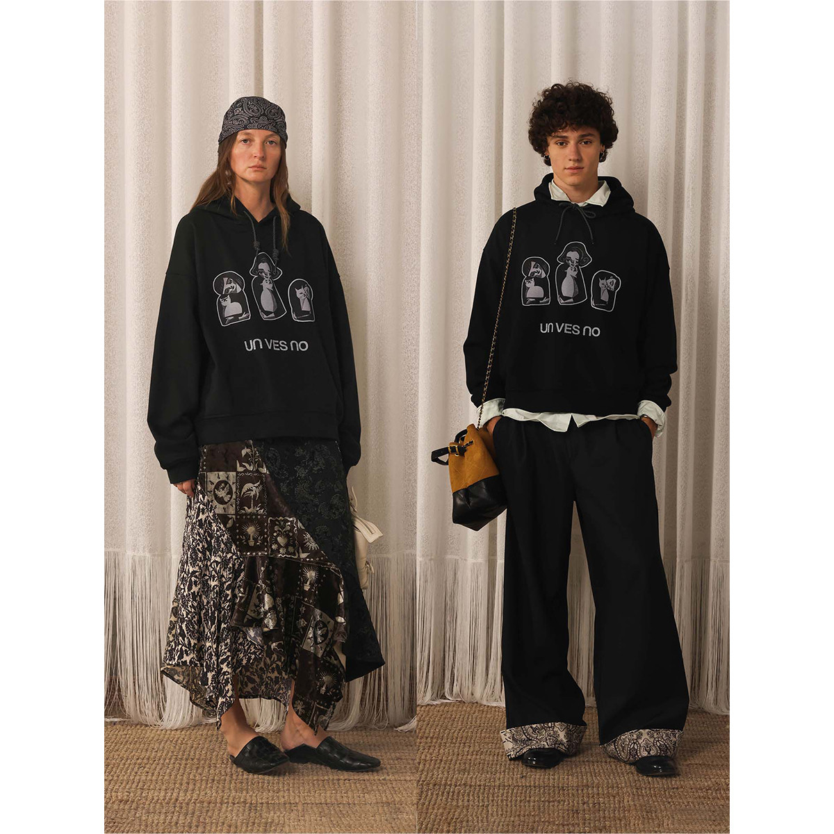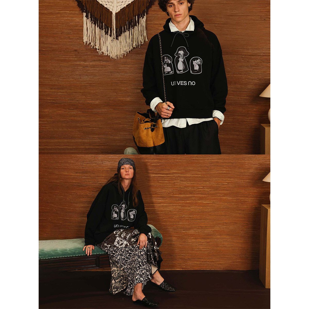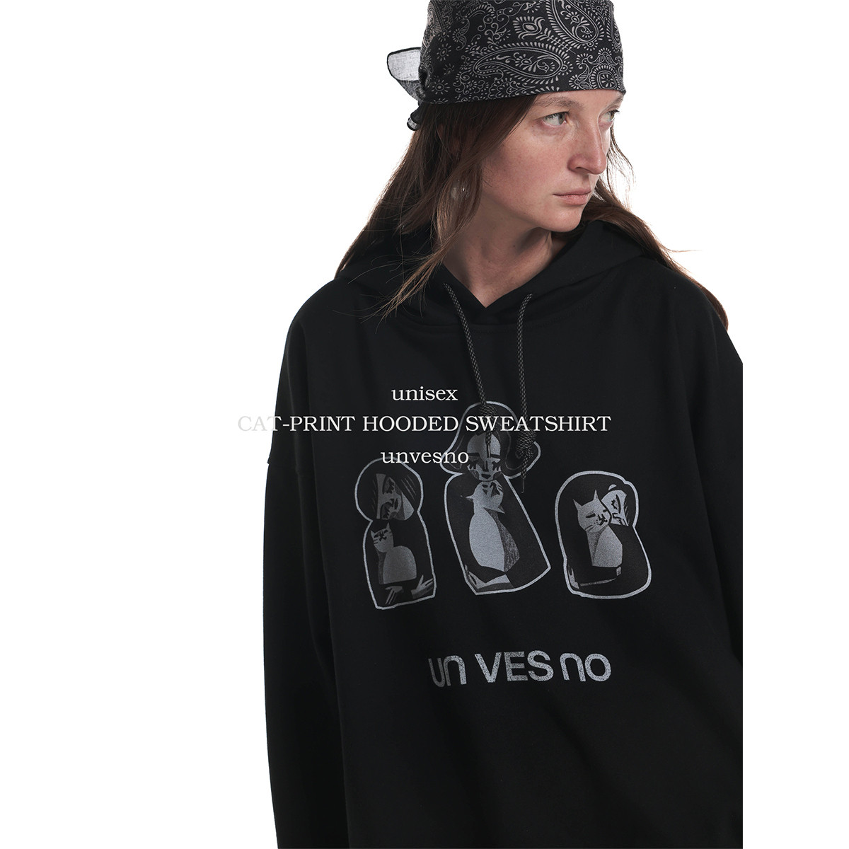 【加绒】Unvesno(UN)高智趣味版画猫咪治愈慵懒休闲保暖卫衣