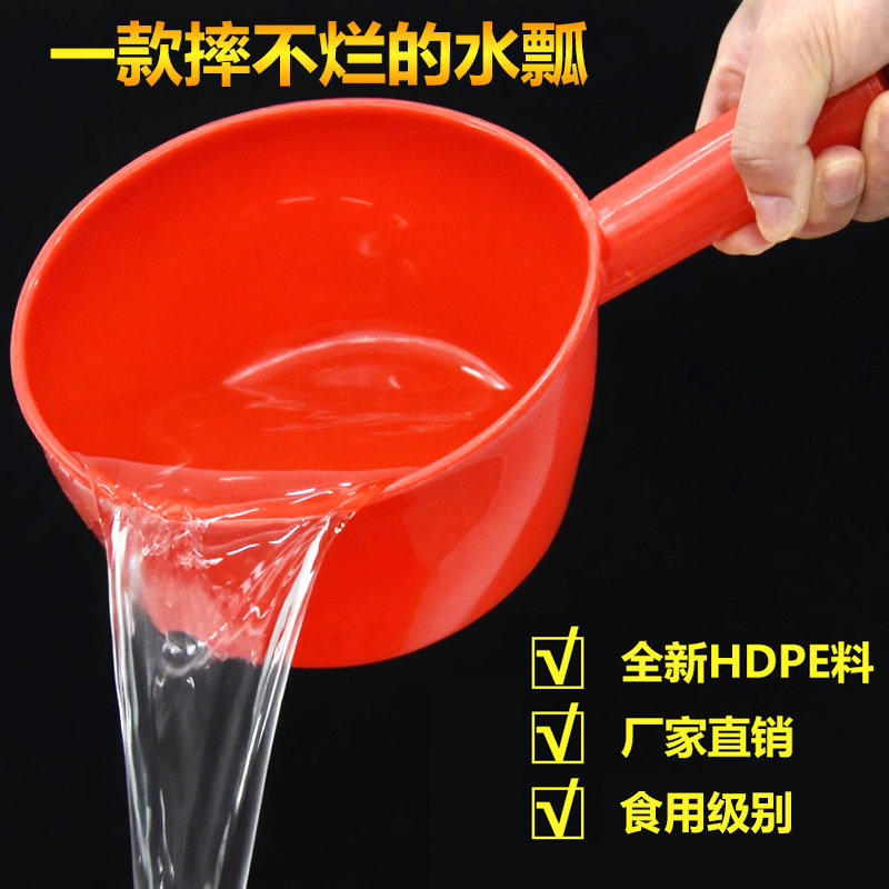 食品级特厚珠江熟胶红色大号水勺水瓢塑料舀水壳耐酸碱摔不烂加厚
