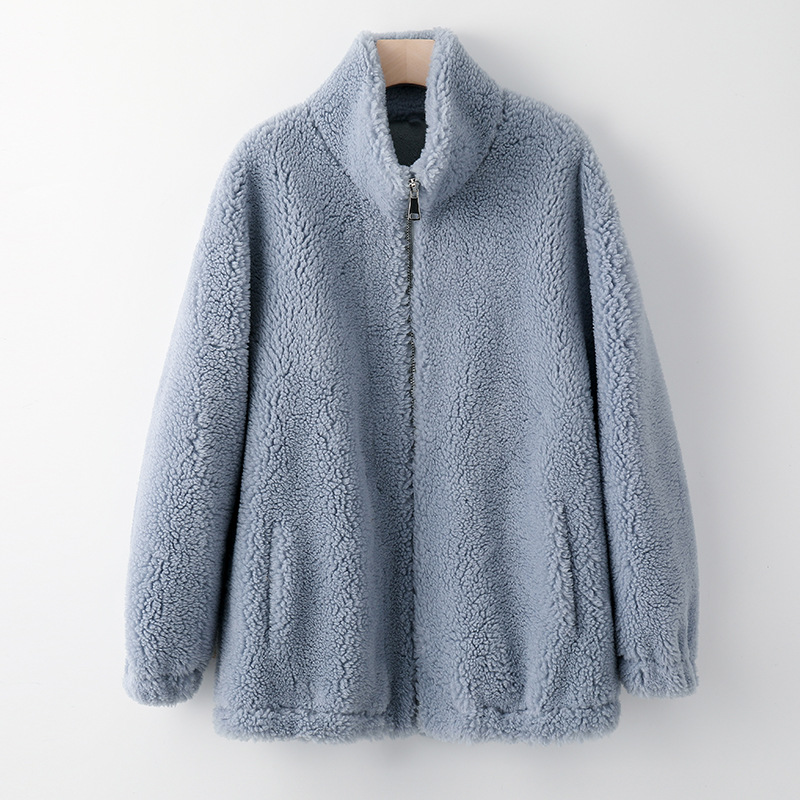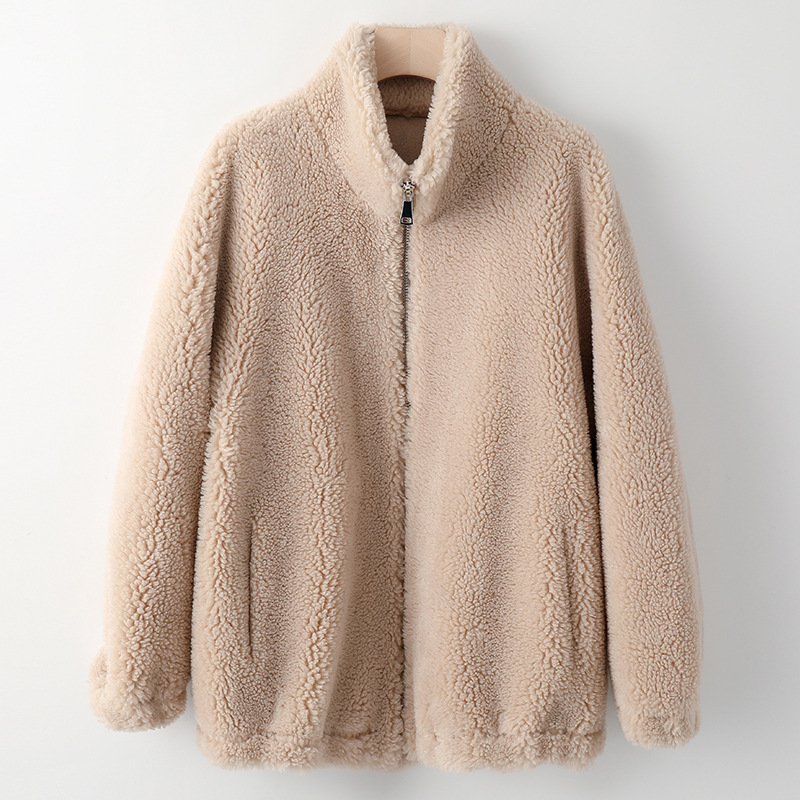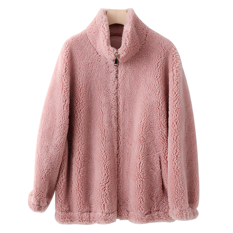 羊剪绒大衣皮草颗粒皮毛一体外套
