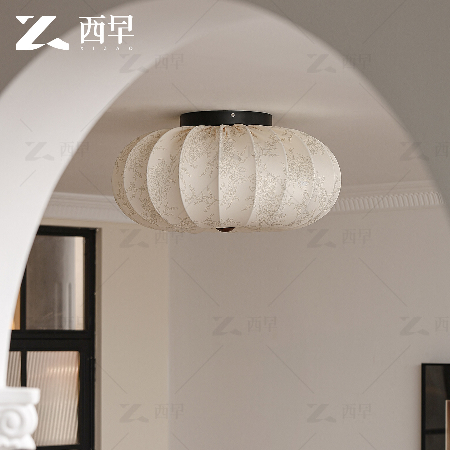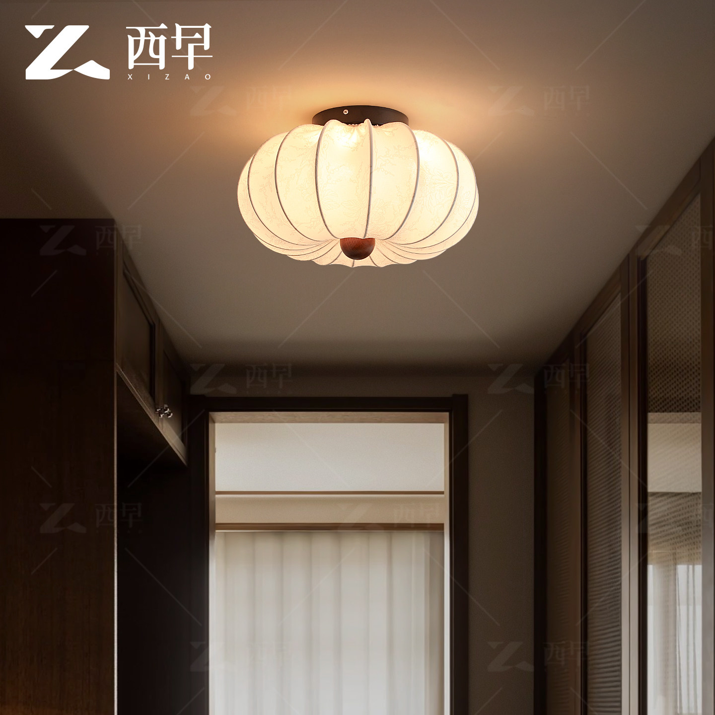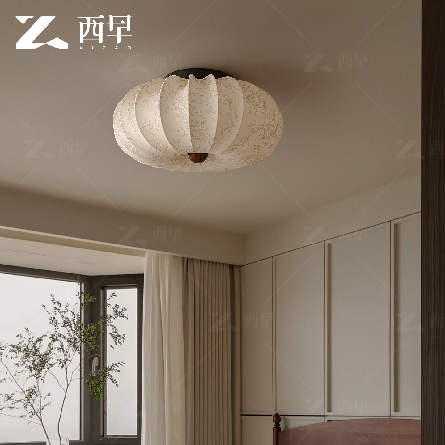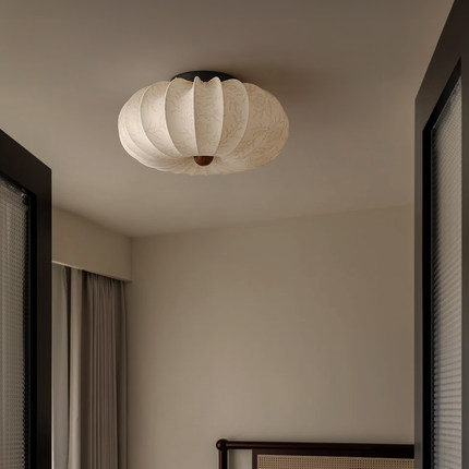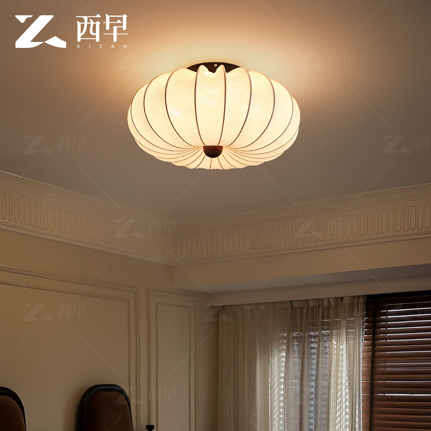 新款法式中古卧室吸顶灯复古胡桃木纹布艺印花高级感主房间灯西早