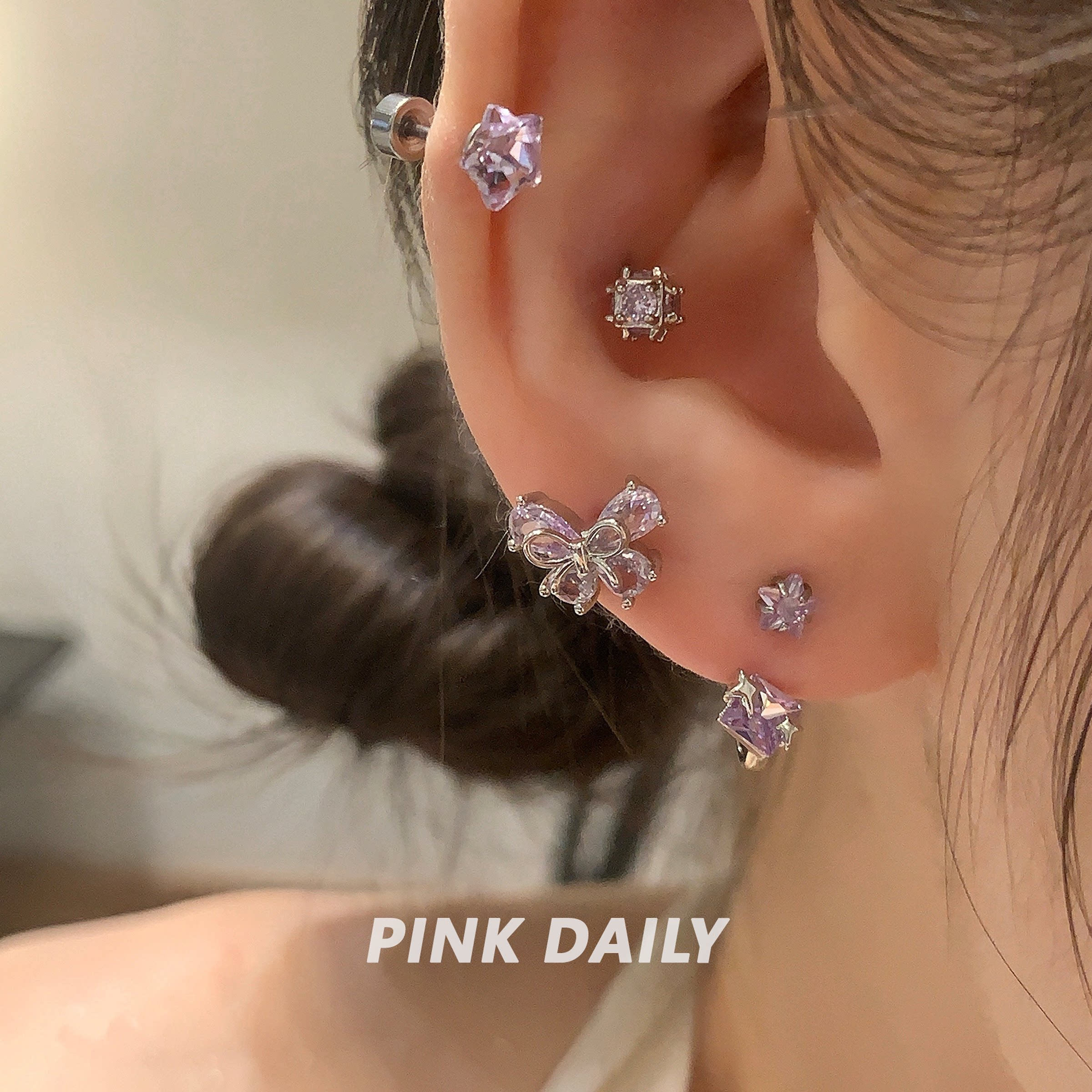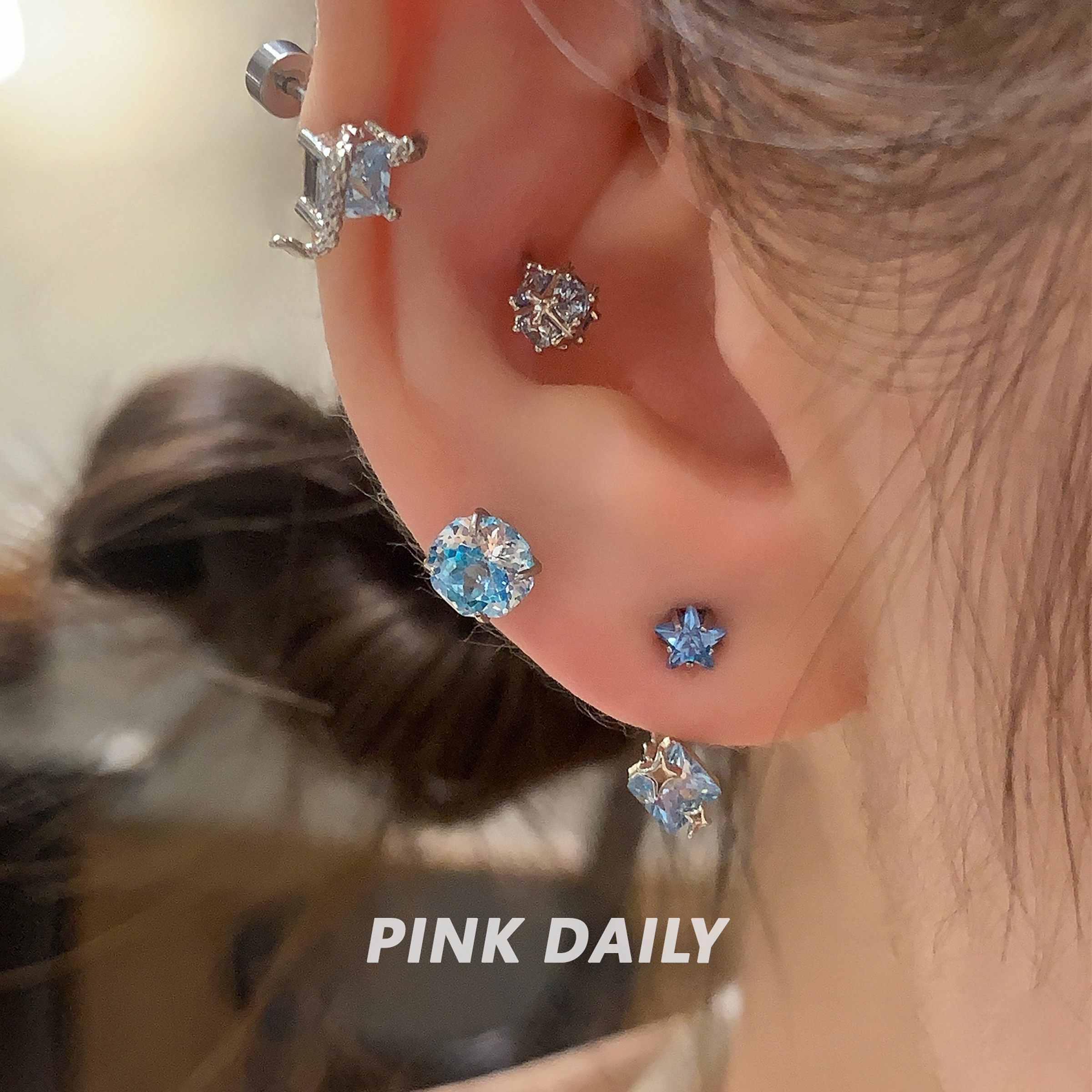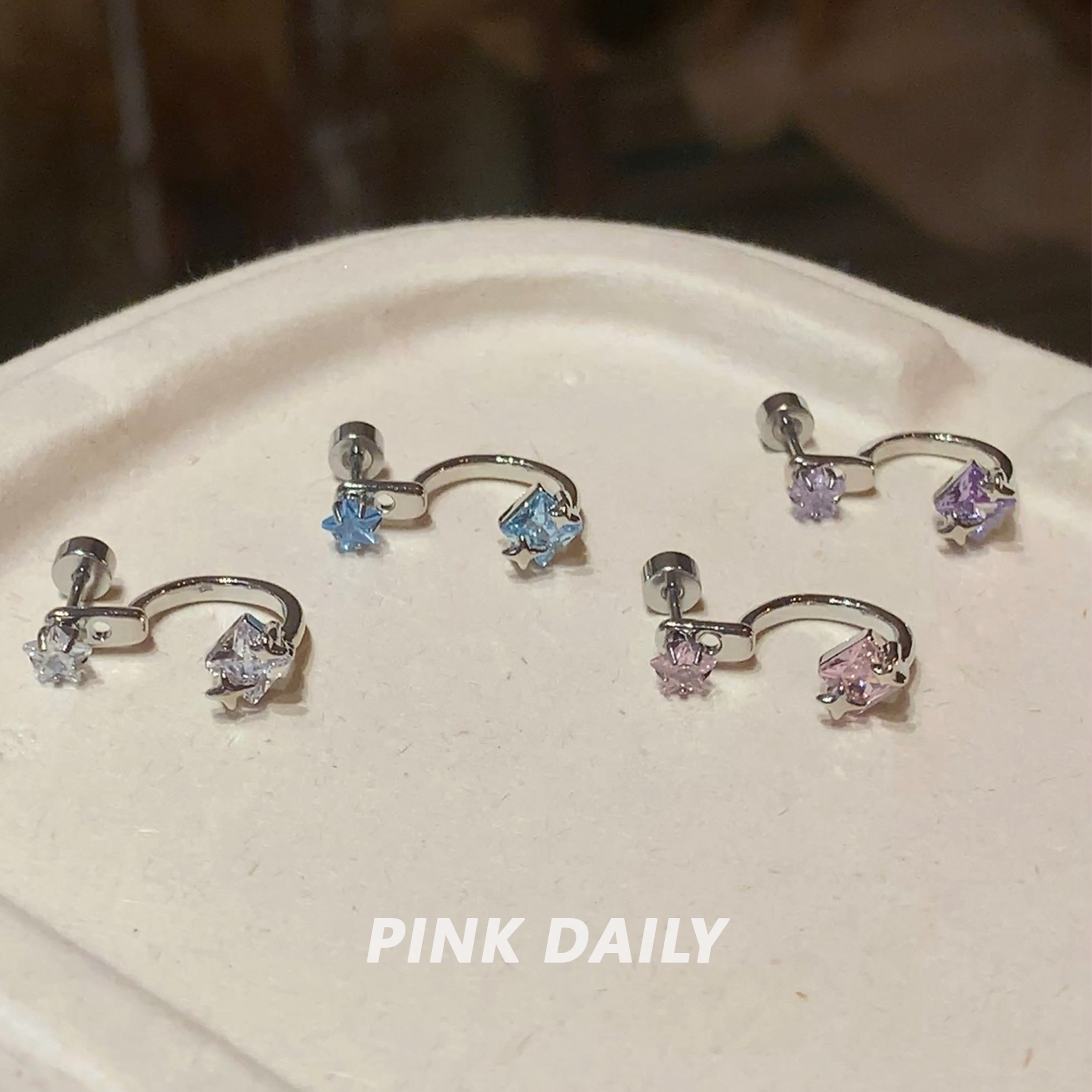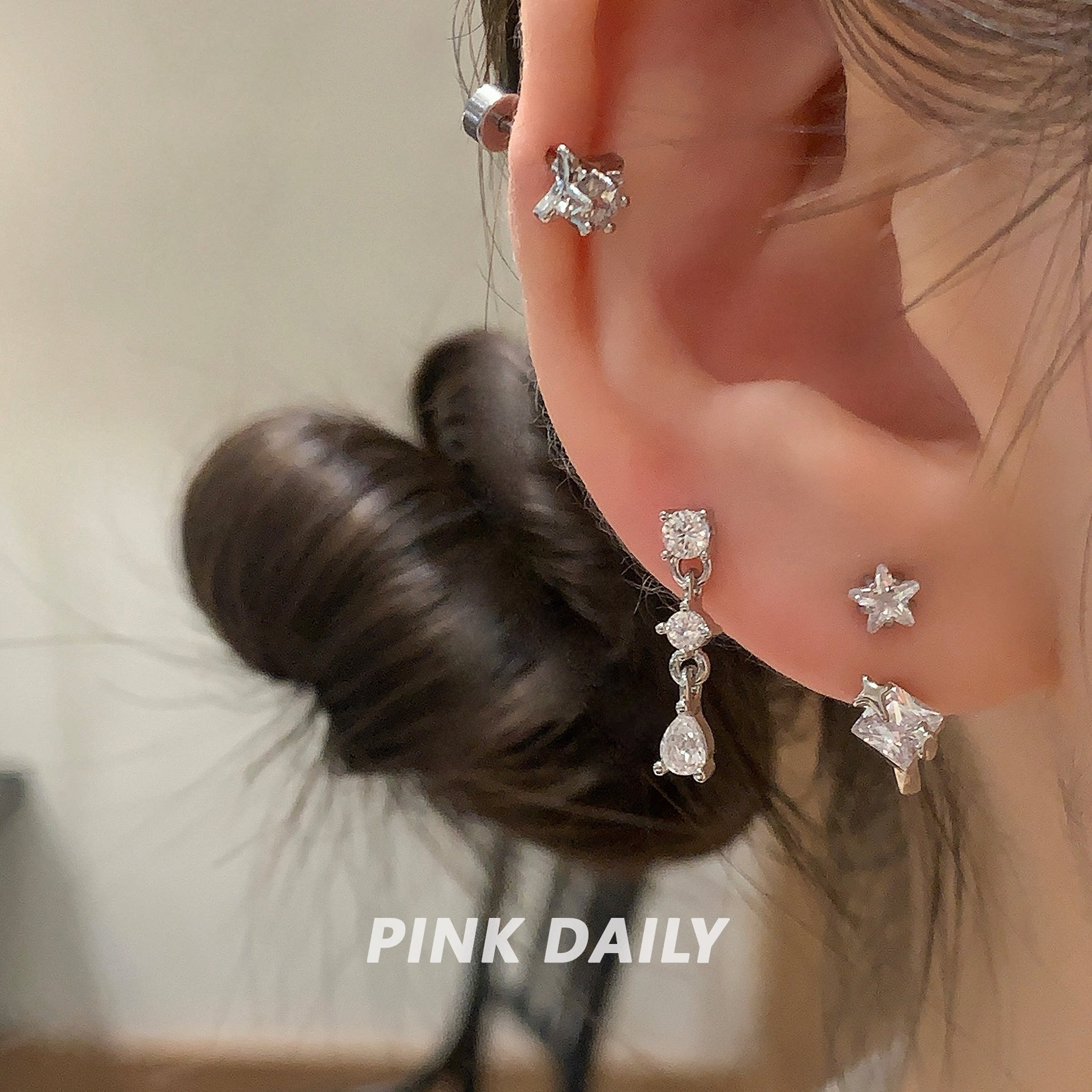【特价款】超闪星星锆石后挂式钛钢耳钉女设计感小众高级感耳饰