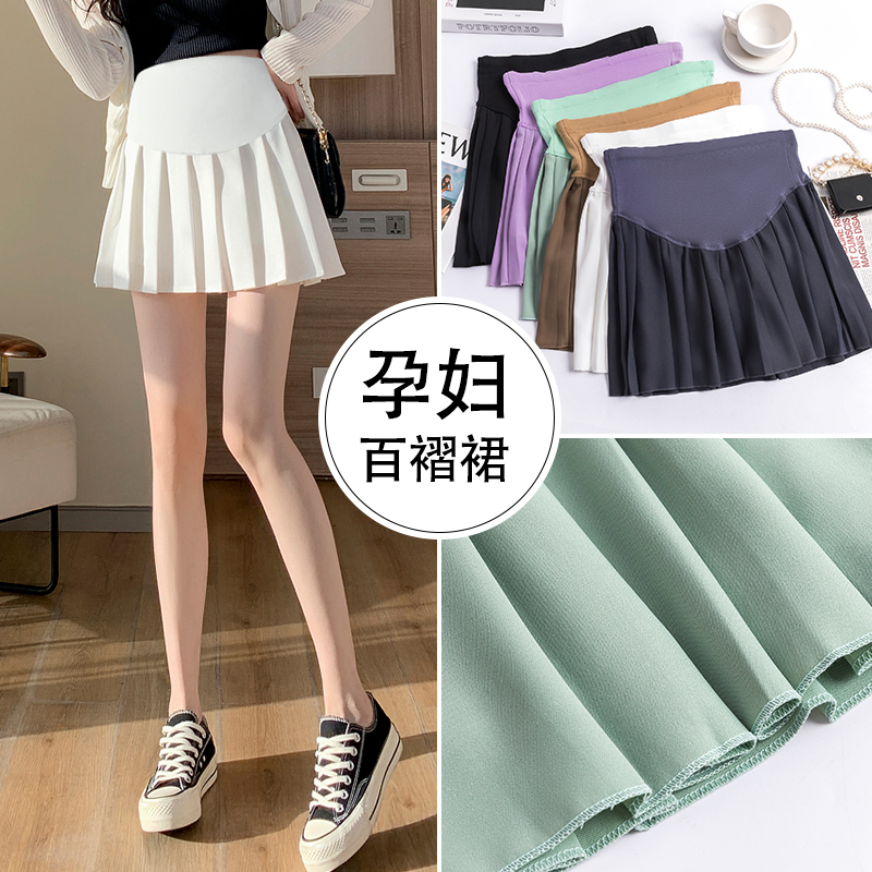 孕妇百褶裙e夏季薄款时尚半身裙显瘦纯色A字裙子高腰托腹短裙夏装