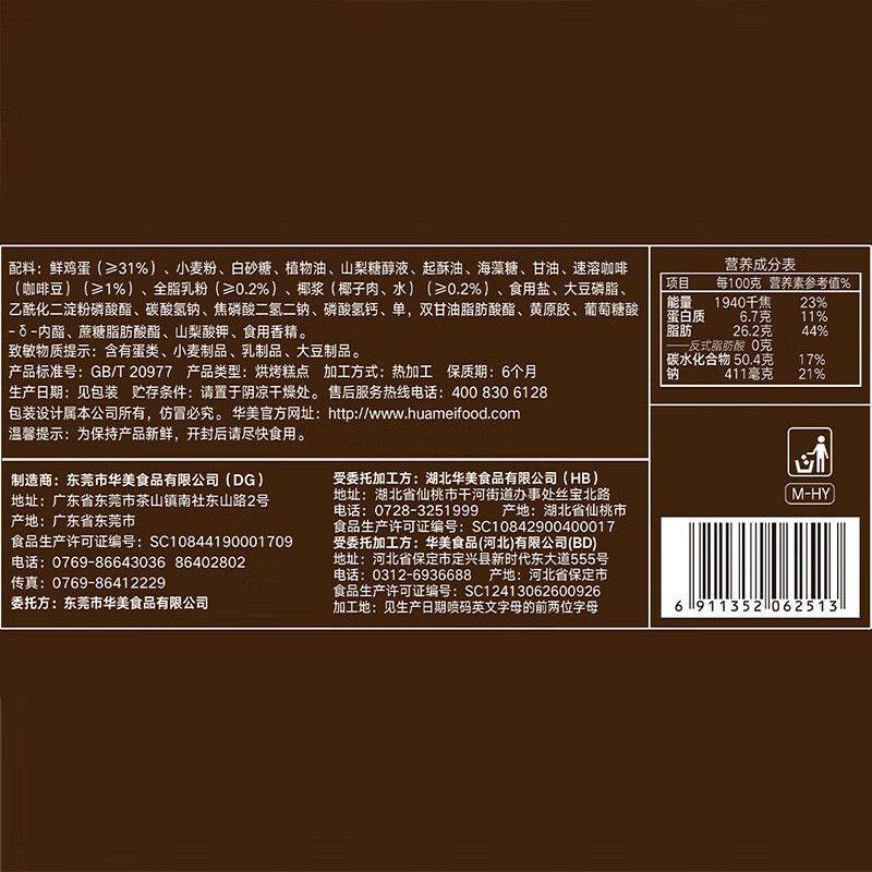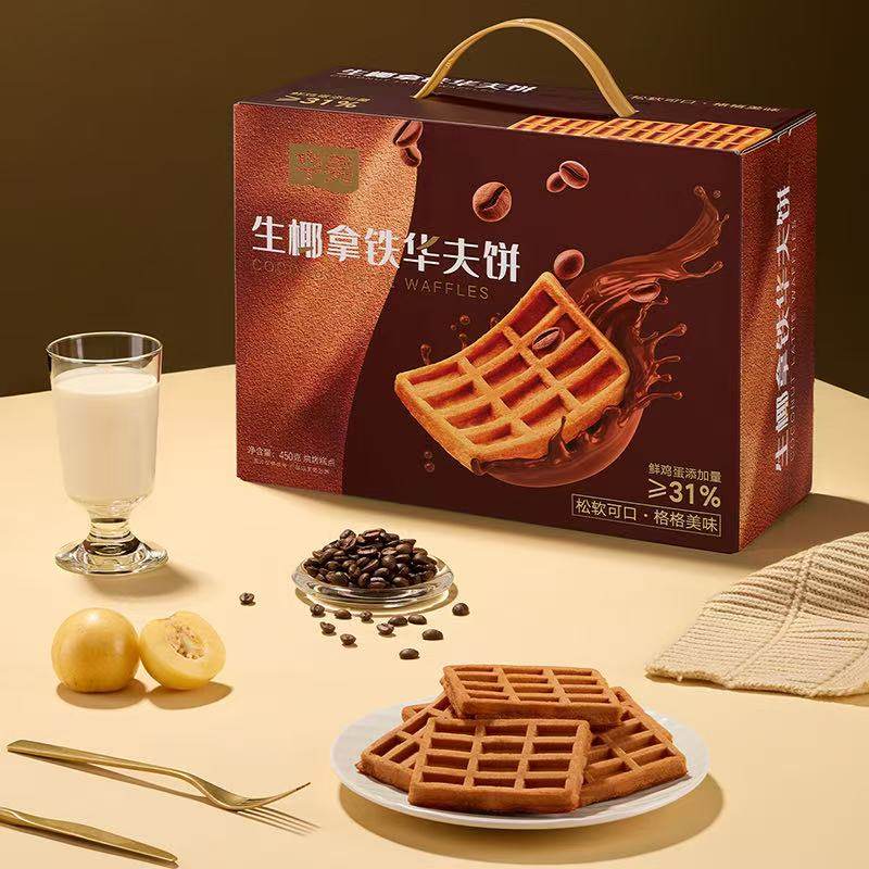 华美生椰拿铁华夫饼450g学生早餐代餐休闲零食饼干蛋糕下午茶