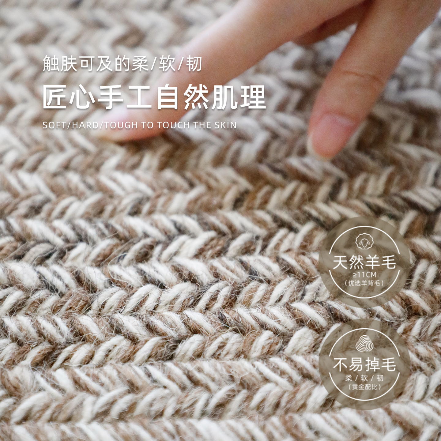 无胶编织圆形羊毛地毯天然环保