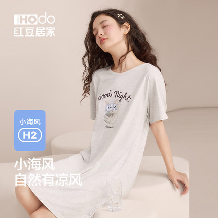 红豆【小海风】凉感短袖睡裙莫代尔棉甜美家居服少女连衣裙A类夏