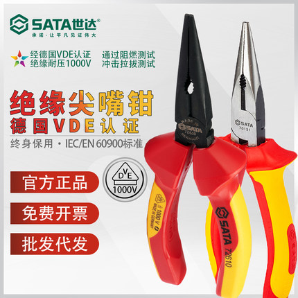 世达绝缘尖嘴钳德国进口VDE耐高压6/8寸电工专用省力歪头尖口钳