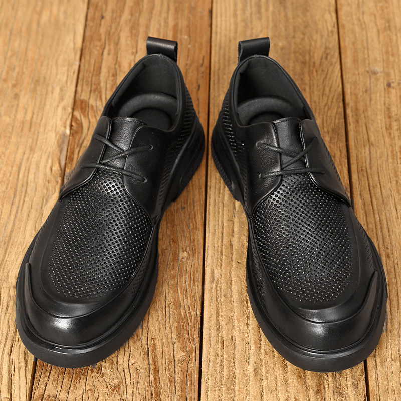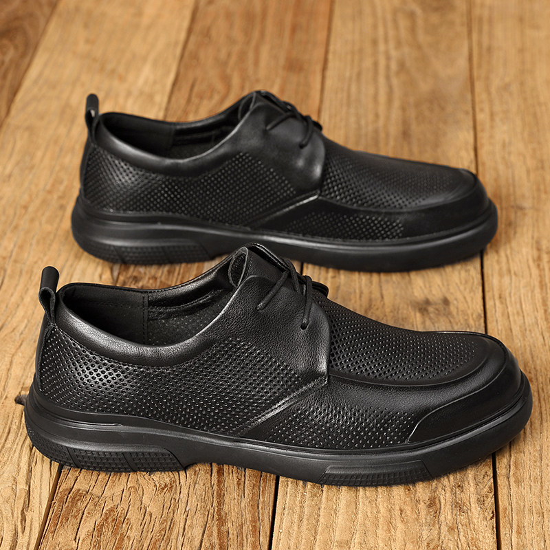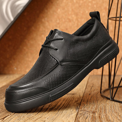 真皮男鞋头层牛皮百搭透气软底鞋商务英伦休闲鞋圆头男士皮鞋男款