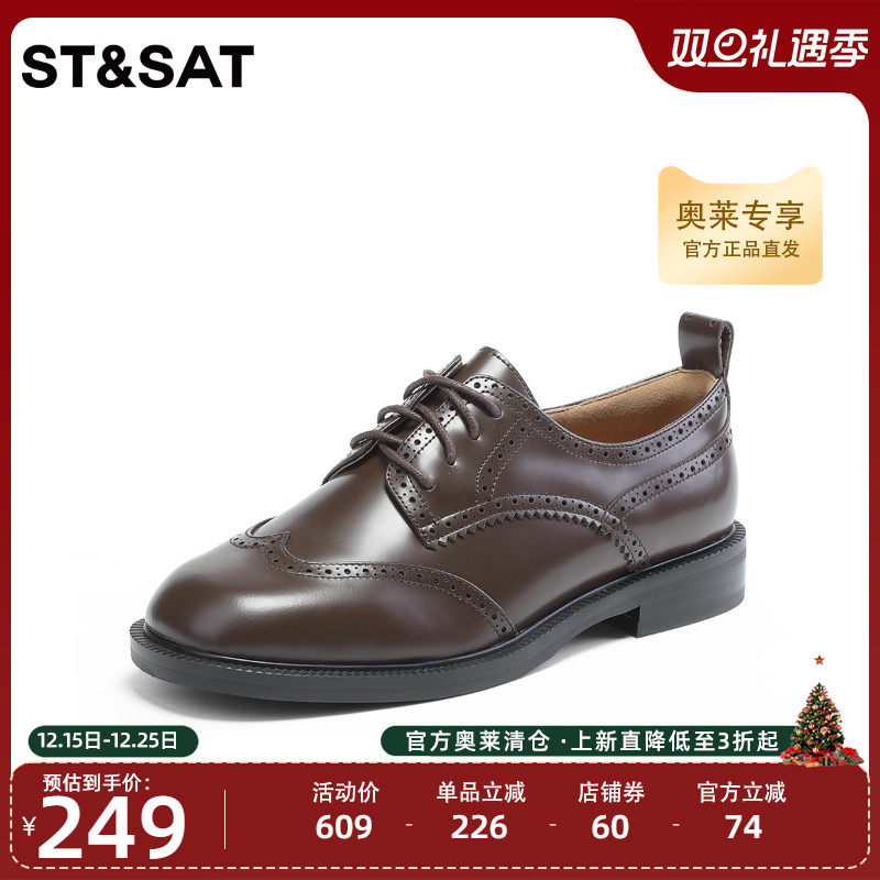 星期六时尚英伦风小皮鞋秋季新款系带圆头低跟复古深口单鞋女