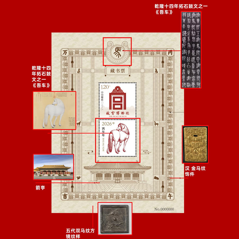 2026年故宫马年藏书票正版蛇年九龙壁四季故宫文创邮票龙年盖章版