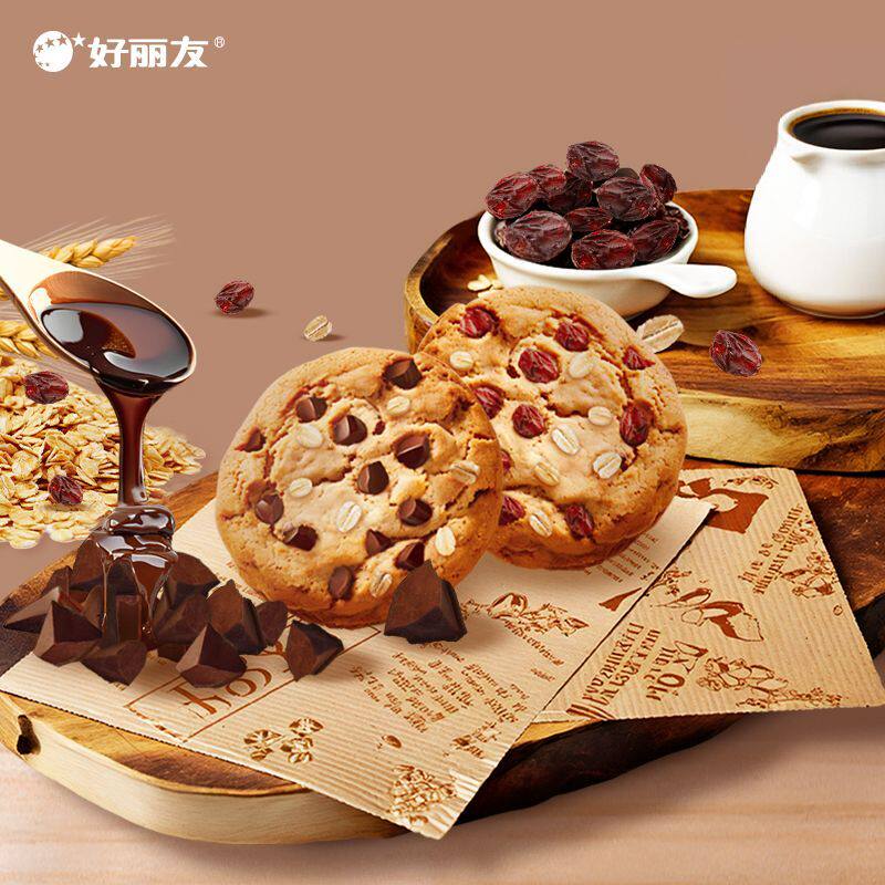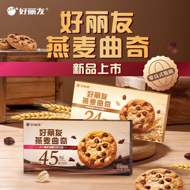 好丽友燕麦曲奇85g巧克力味提子味巧克力块休闲饼干办公室零食