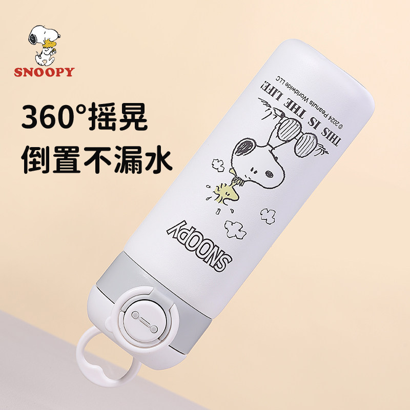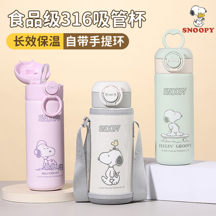 史努比儿童保温杯女生高颜值吸管水杯2024新款学生上学便携弹盖杯
