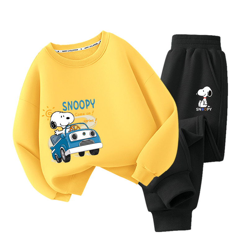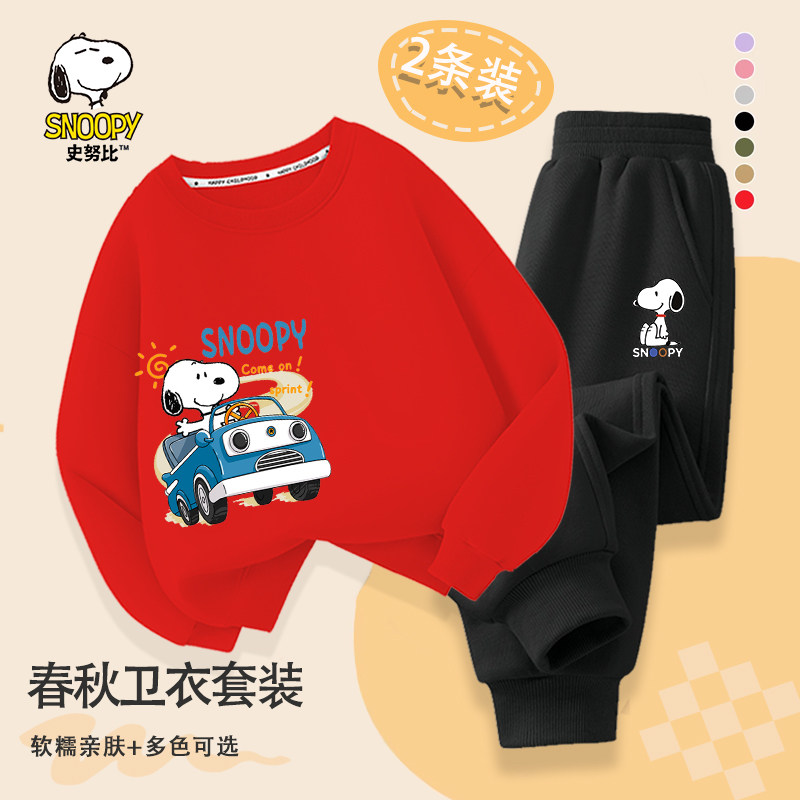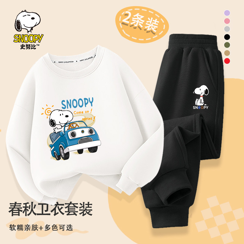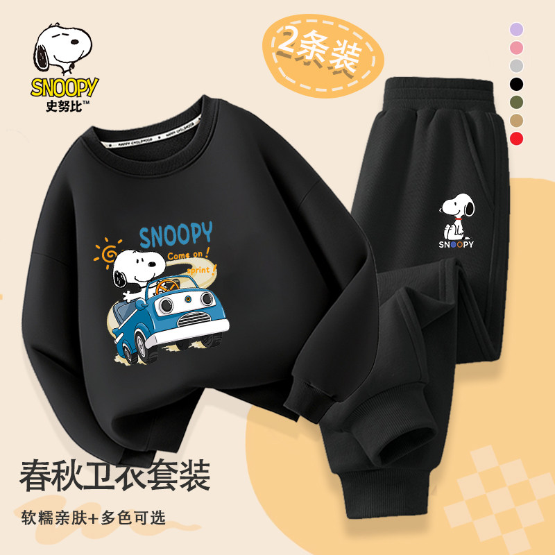 史努比儿童2026新款春秋款休闲舒适柔软亲肤透气吸汗男童卫衣套装