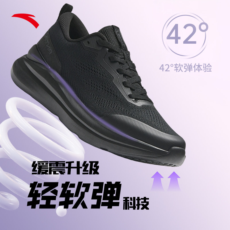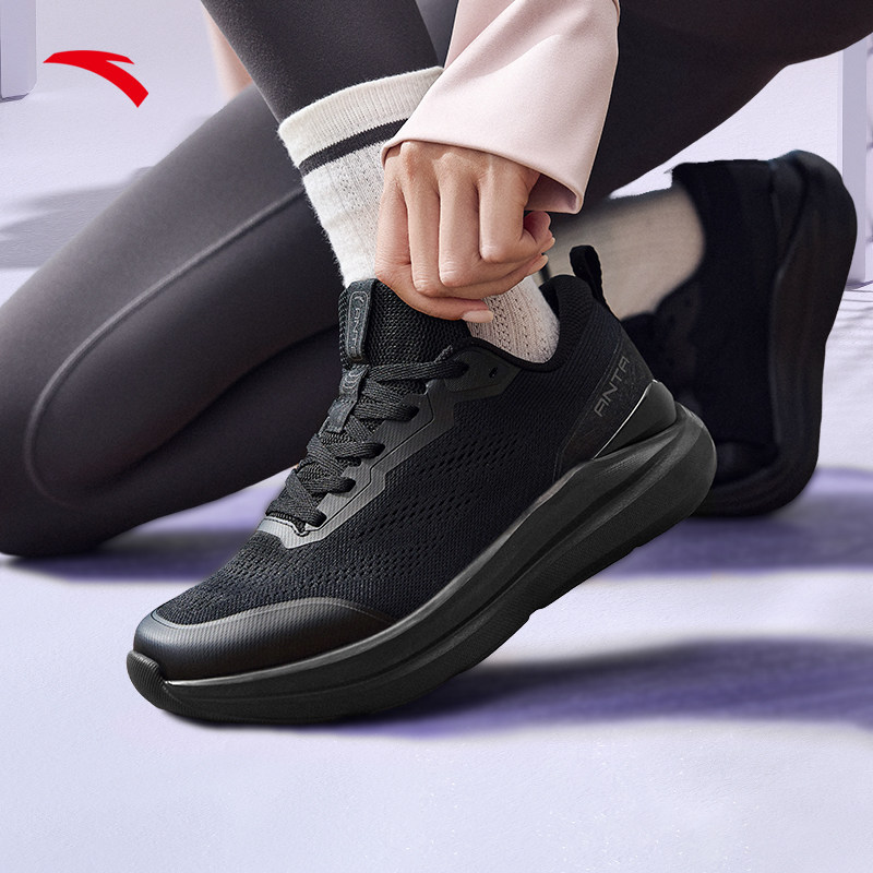 安踏女鞋轻便软底减震运动鞋2025冬季新款全黑鞋妈妈休闲跑步鞋