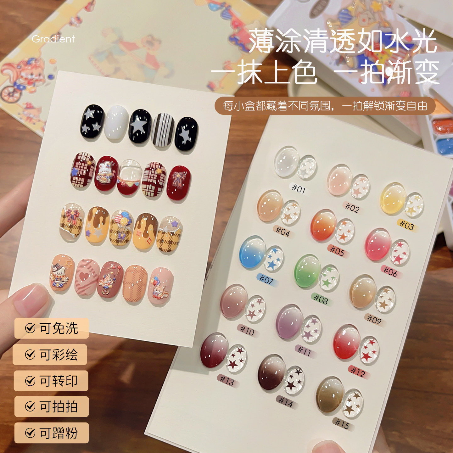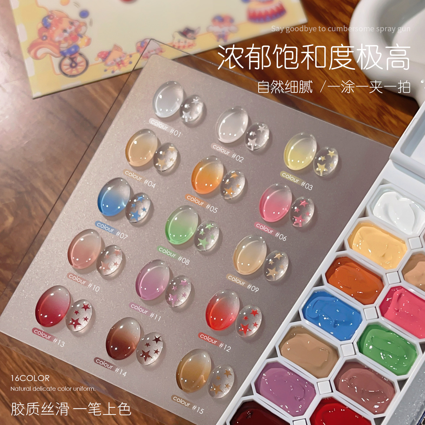 恩妮诗狐狸魔术师拍拍指甲油胶16宫格高饱和浮雕彩绘渐变腮红美甲