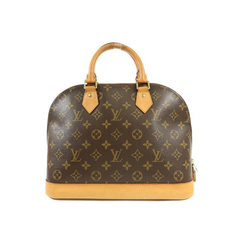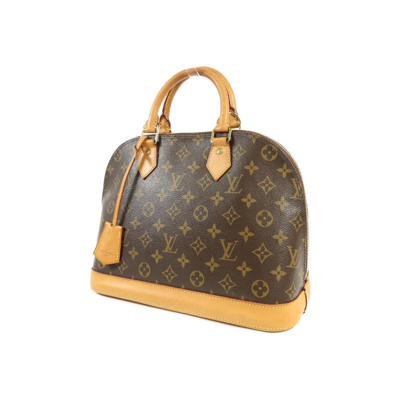 中古LV路易威登女包B级9新Alma贝壳包涂层/防水帆布手提包棕色