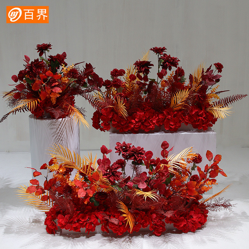百界仿真花花排t台舞台地排花路引花婚礼装饰布置道具婚庆成品花