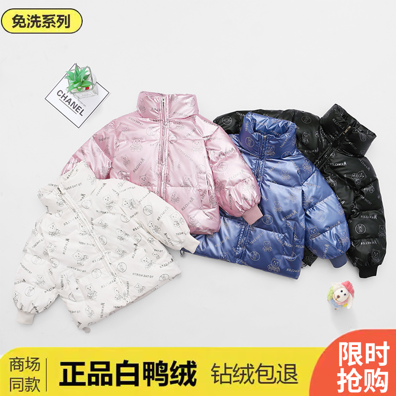 新款儿童亮面免洗羽绒服加厚男童女童韩版白鸭绒外套保暖洋气冬季