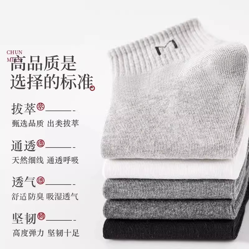 春秋季男士纯棉吸汗透气短袜