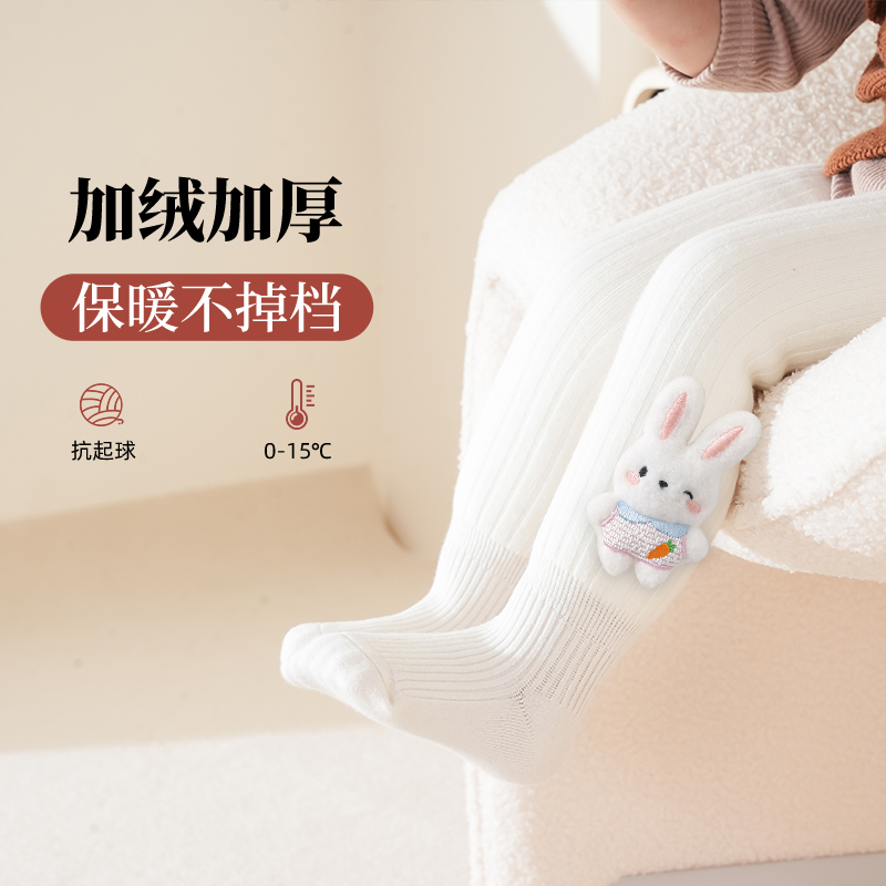 婴儿连裤袜加绒加厚秋冬款大PP宝宝打底裤冬季白色卡通女童连体袜