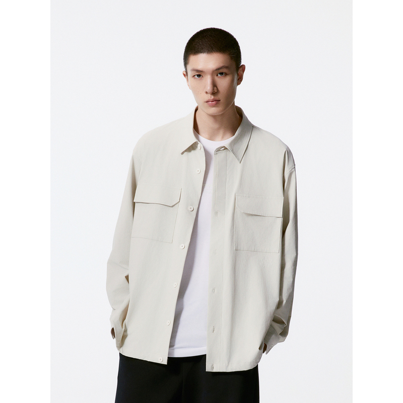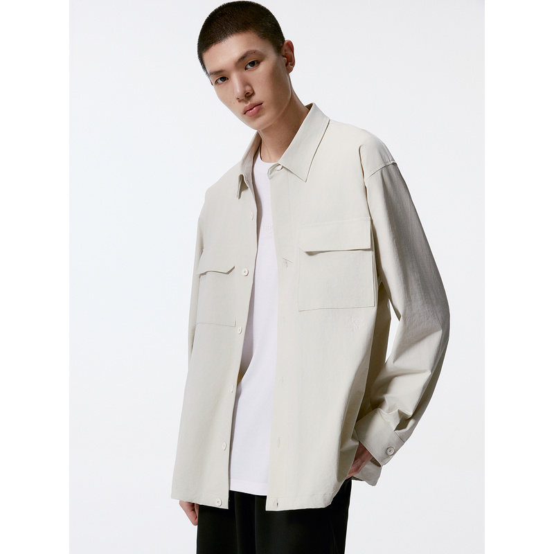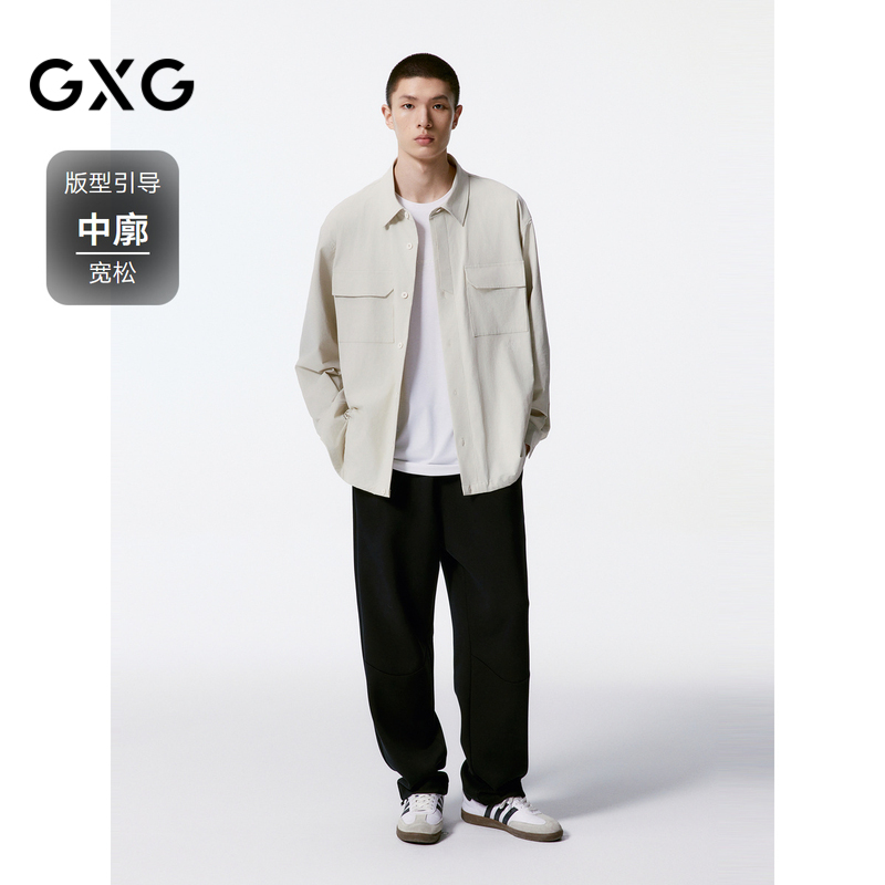 GXG男装 米白色宽松时尚翻领长袖衬衫外套男 24秋品G24X033029