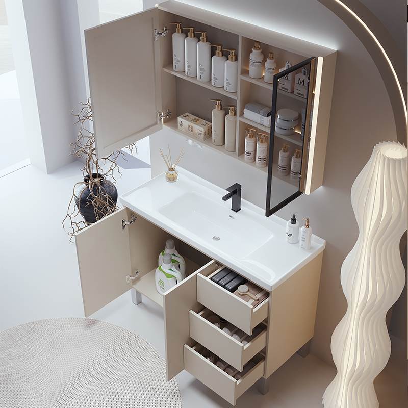 安苒卫浴奶油法式浴室柜陶瓷一体盆落地式组合洗手盆洗脸盆洗漱台
