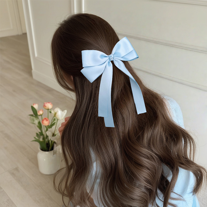 蝴蝶结飘带发夹高级感低马尾半扎发甜美公主风弹簧夹鸭嘴夹发饰女