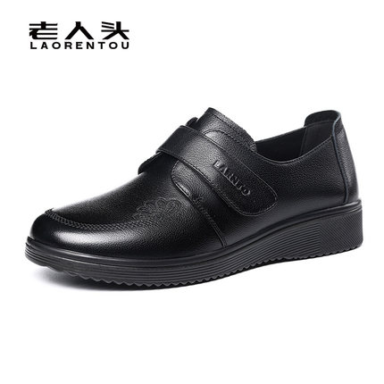 老人头女鞋中老年妈妈鞋舒适平底奶奶鞋百搭软底小皮鞋真皮女单鞋