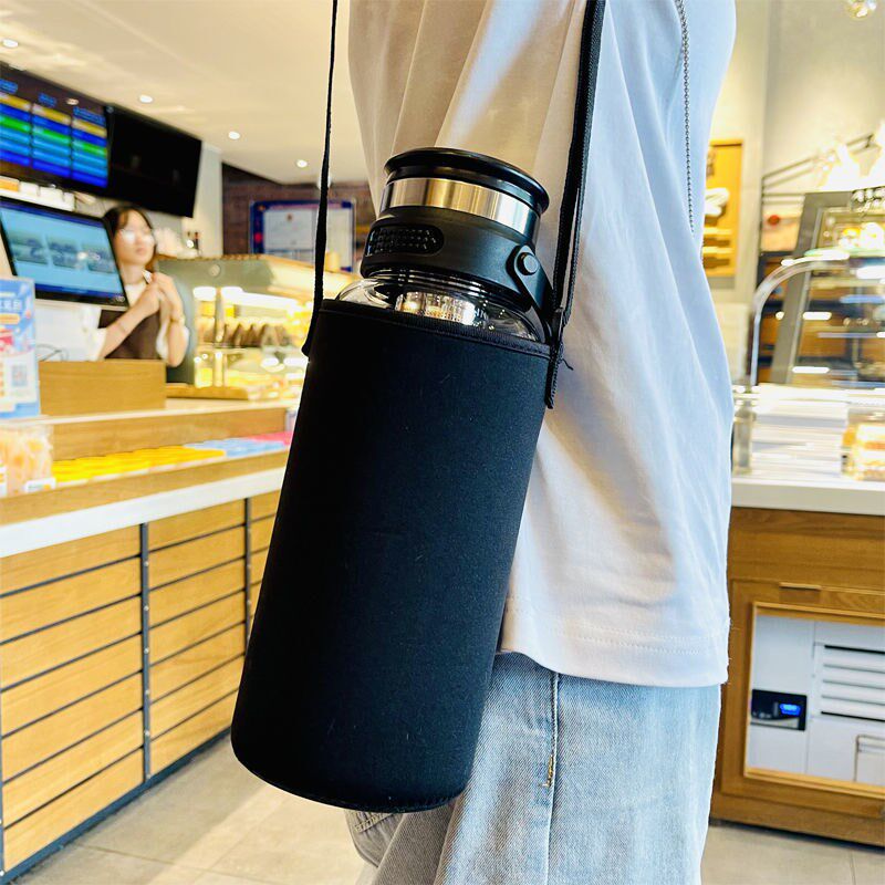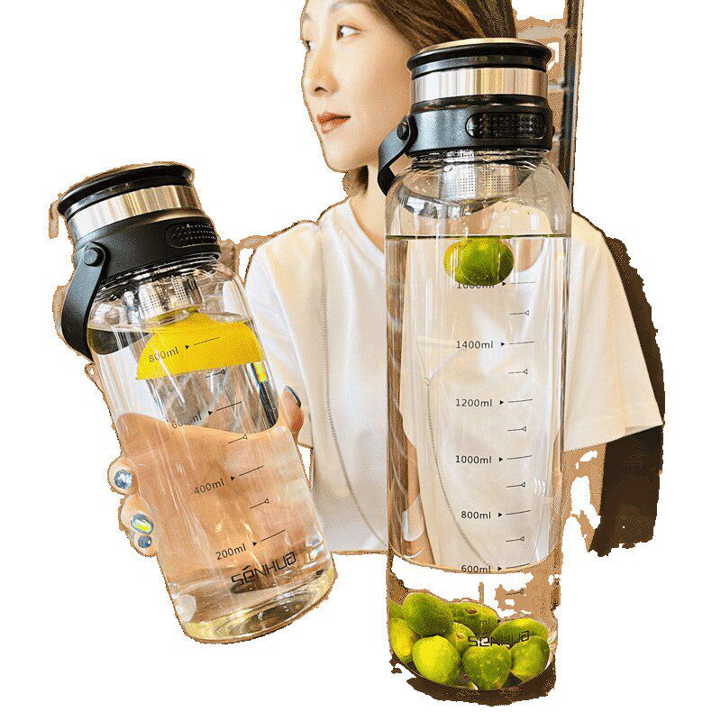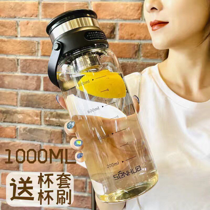 超大容量茶水分离玻璃杯带刻度水杯便携单层耐热带盖W过滤泡茶杯