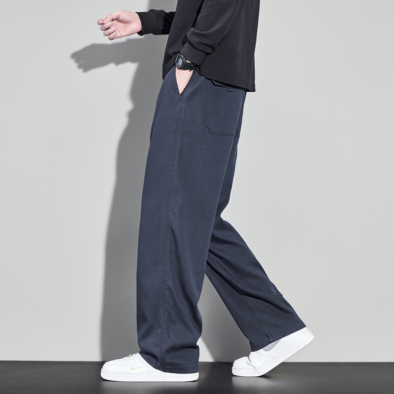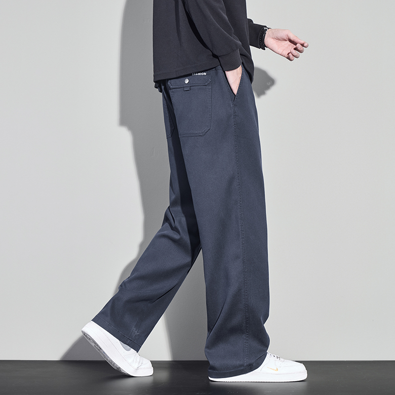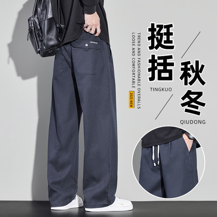 秋冬季松紧腰牛仔裤男士直筒宽松阔腿工装休闲长裤子2025春秋新款